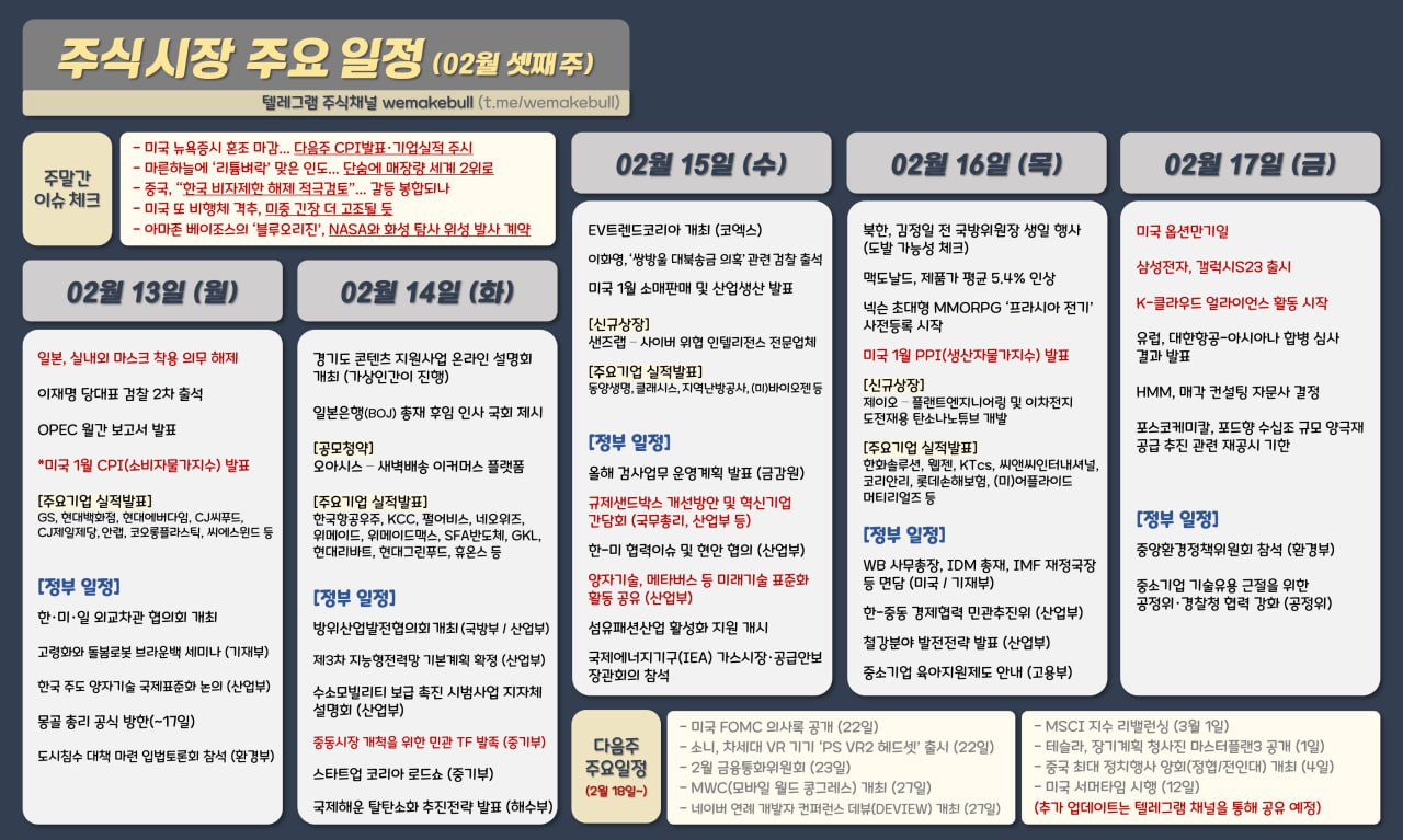 | 2월 15일(수) 증시캘린더 / 해외마감시황 (0) | 2023.02.15 |