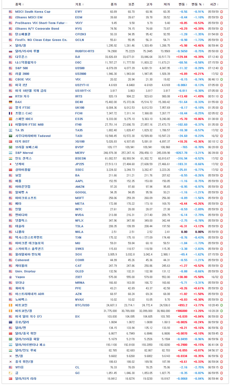 - U.S. Market Closing – 06:00 기준