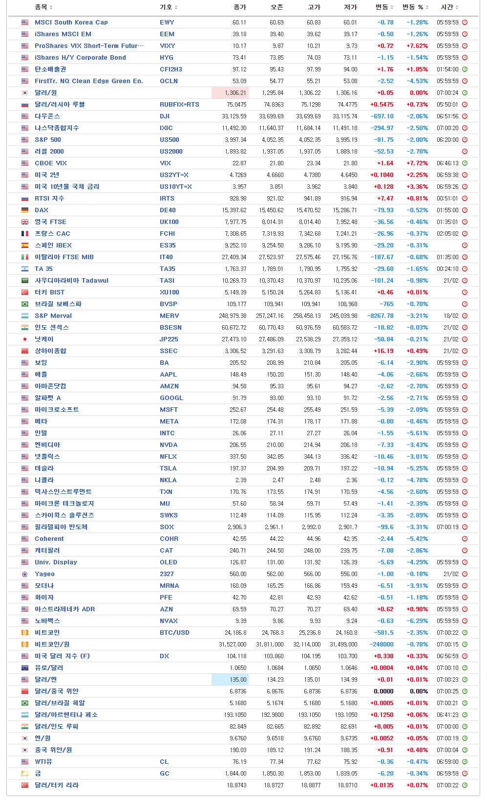 - WTI, 연준 긴축 강화 우려 및 달러 강세 속 하락 마감. NDF 원/달러 환율 1,306.20원 호가