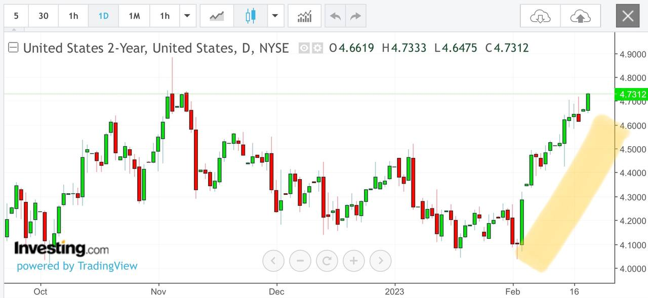 연방준비제도(Fed·연준)이 기준 금리를 더 높이, 오래 유지할 것이라는 전망에 채권 수익률이 급등하고 뉴욕 증시가 하락했다. 21일(현지 시간... 서울경제 | 2023-02-22 06:48