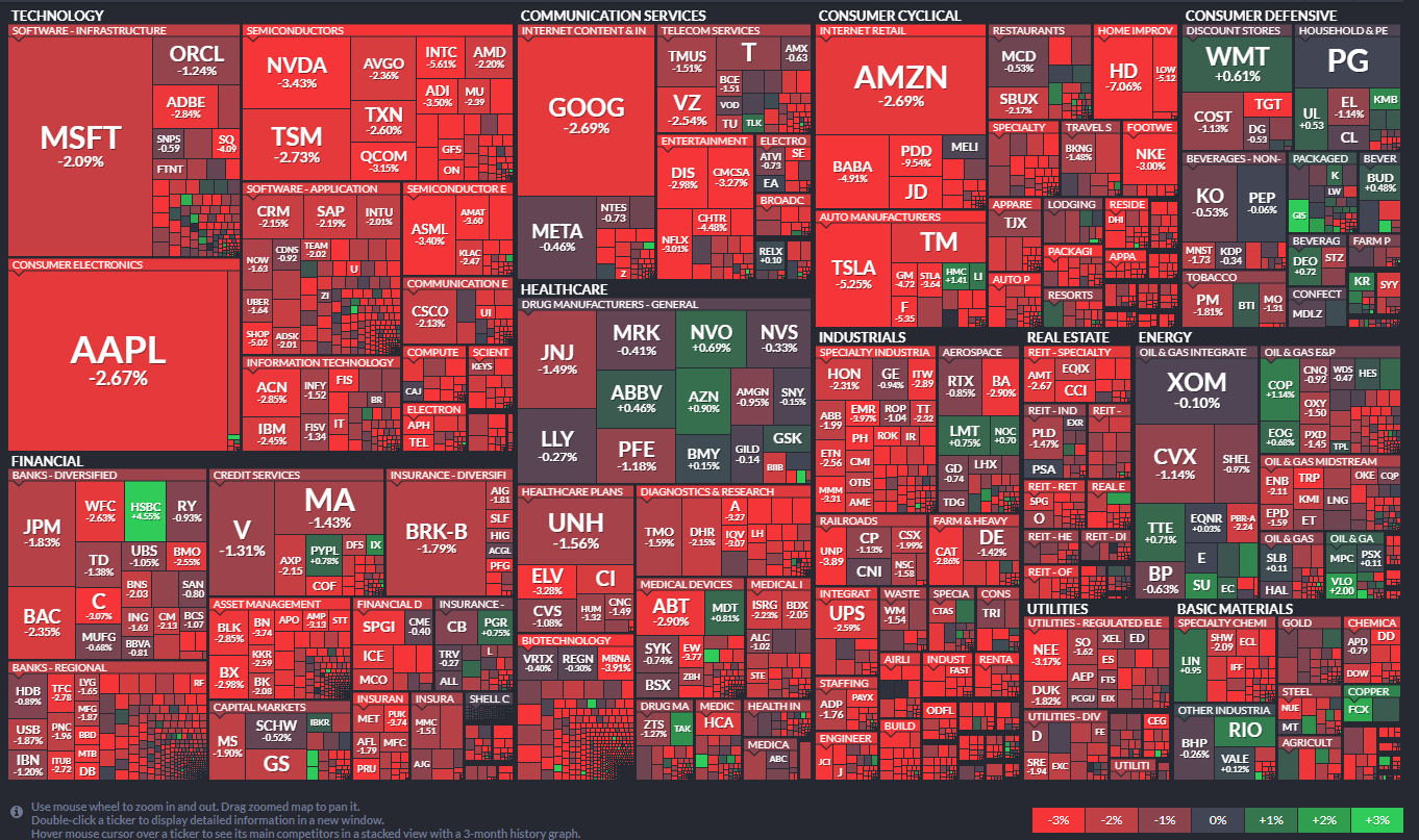 02/22 미 증시, 국채 금리 급등과 차익 실현 매물 출회되며 하락
