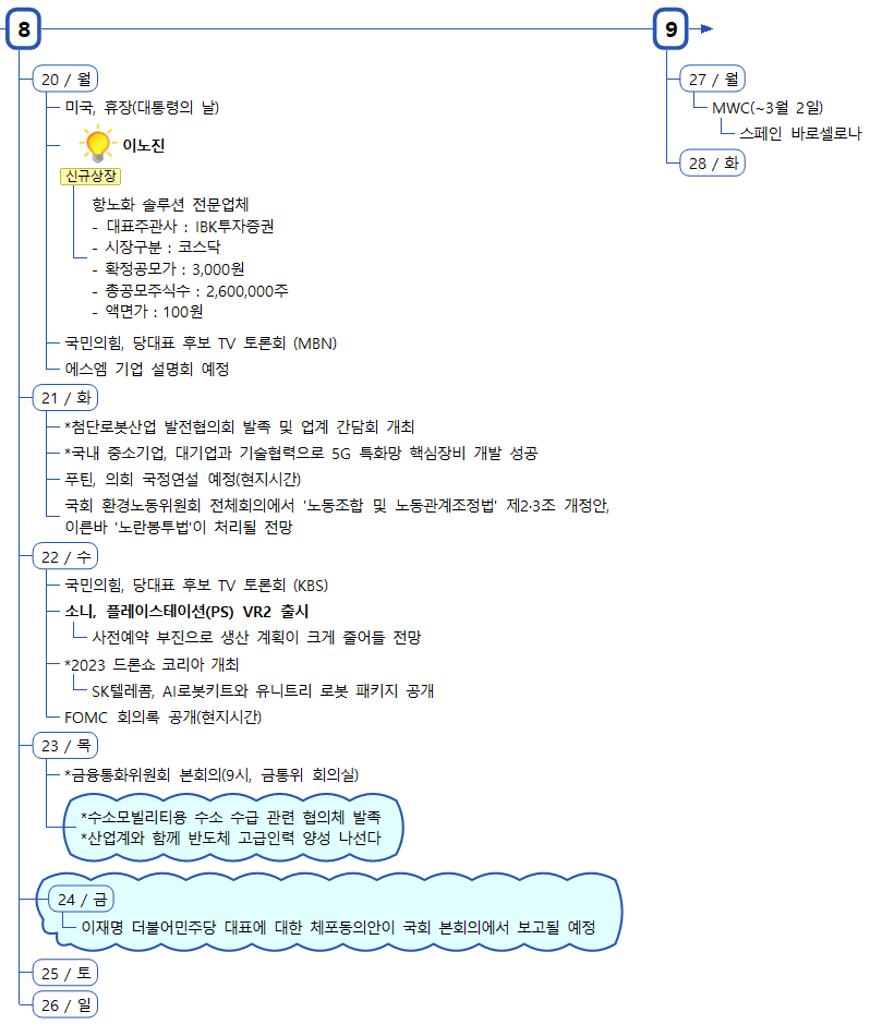 증시캘린더는 개인적으로 관련된 소식을 확인후 작성한 일정이라 변동 또는 오류의 소지가 있습니다.