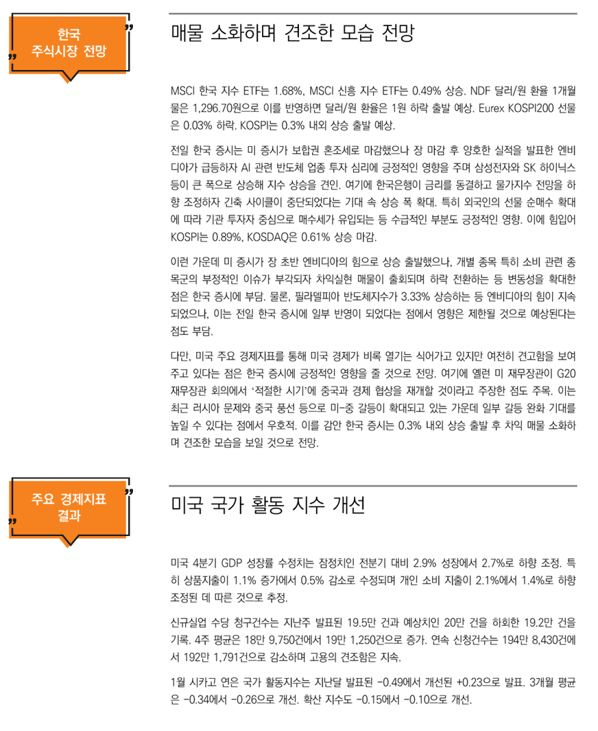 02/24 한국 증시: 매물 소화하며 견조한 모습 전망