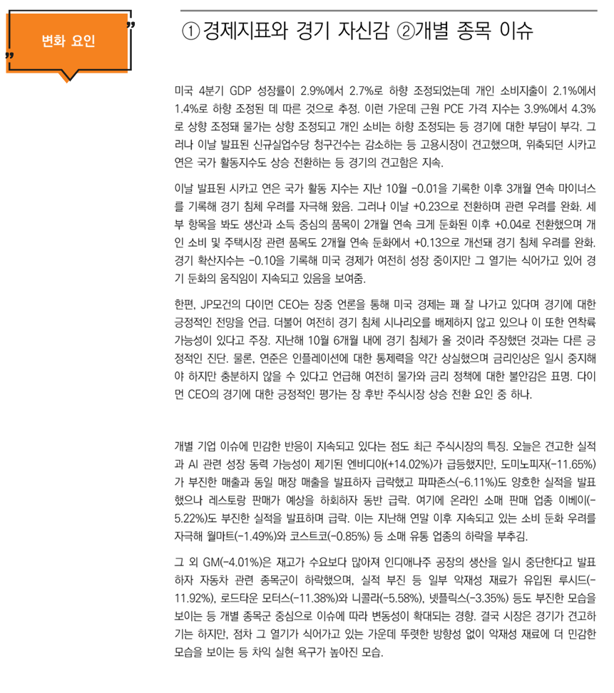 변화요인: ①경제지표와 경기 자신감 ②개별 종목 이슈