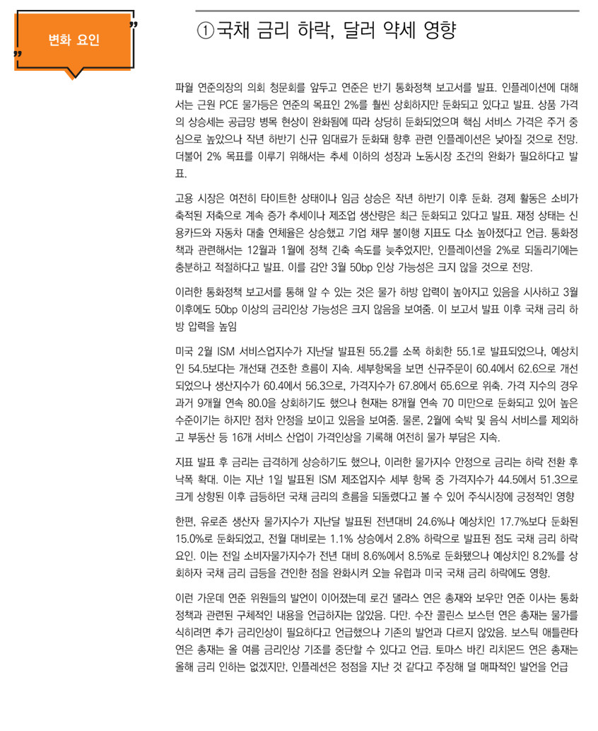- 금주 일정 : 7일(화) 파월 상원 청문회 출석, 10일(금) 미국 2월 고용지표
