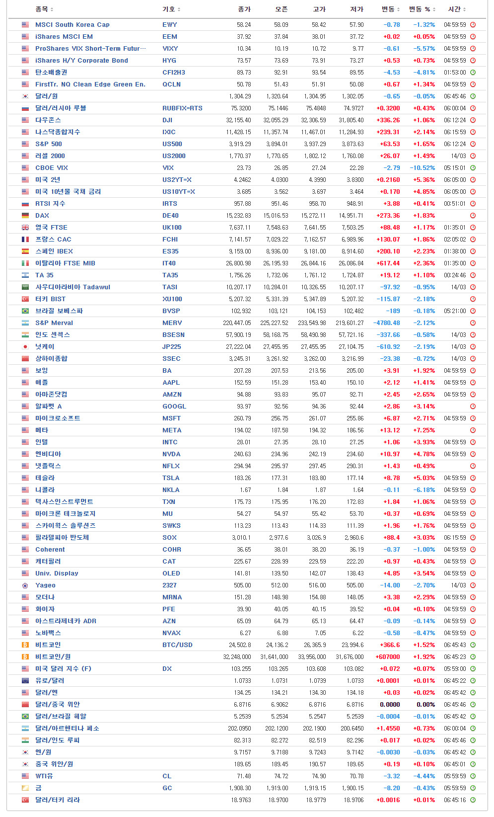 | 3월 13일(월) 증시캘린더 / 해외마감시황 (1) | 2023.03.13 |