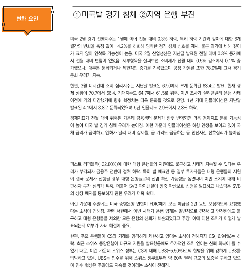 변화요인: ①미국발 경기 침체 ②지역 은행 부진