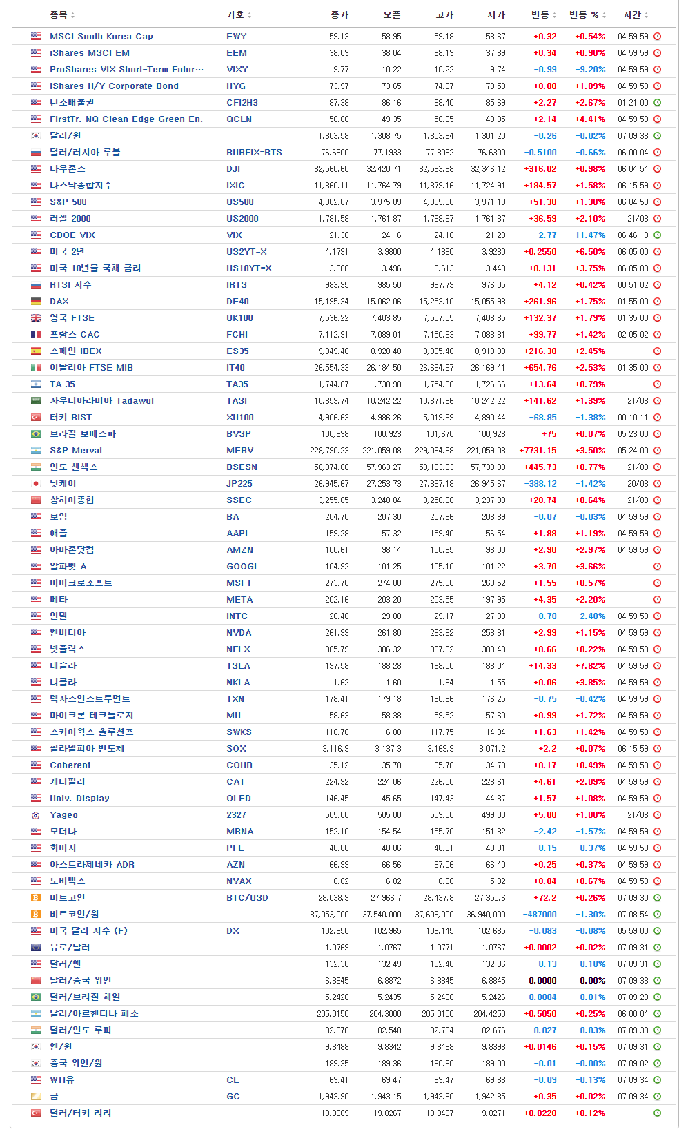 - MSCI 한국지수 ETF: $59.13 (+0.32, +0.54%)