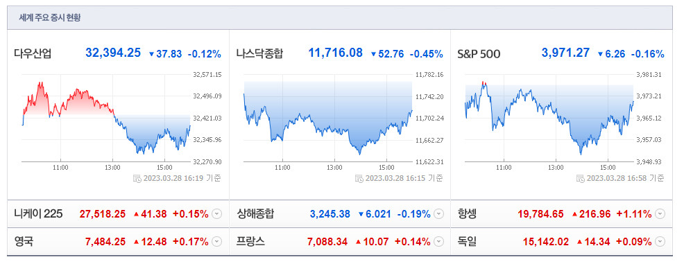 28일(현지 시간) 미국 뉴욕증시의 주요 지수가 은행 위기가 다소 잦아들자 국채금리가 상승하면서 하락 마감했습니다. 나스닥이 0.45% 내린 것... 서울경제 | 2023-03-29 06:41