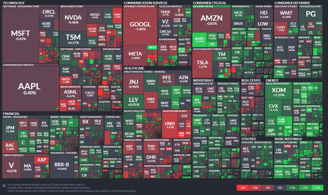 | NASDAQ | 11,716.08 | -52.76 | -0.4% | 1361/1942/269 |