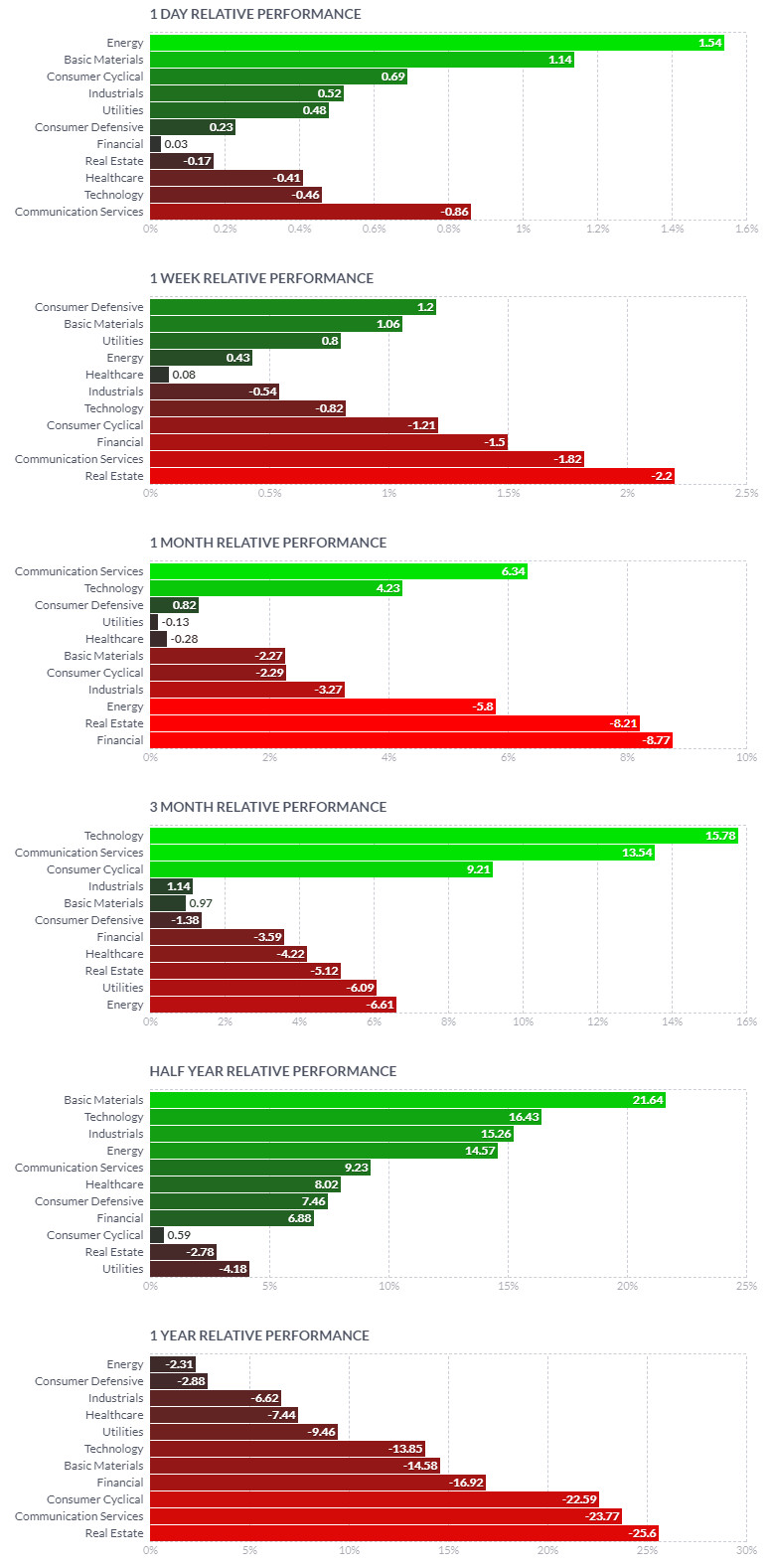 | IT | XLK | 144.2 | -0.5% | 햇빛 | 5.8% | 15.2% | -10.4% |