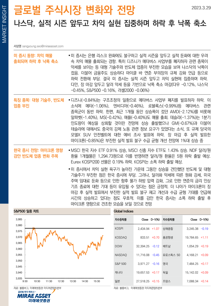 03/29 한국 증시: 마이크론 효과 감안 반도체 업종 변화 주목