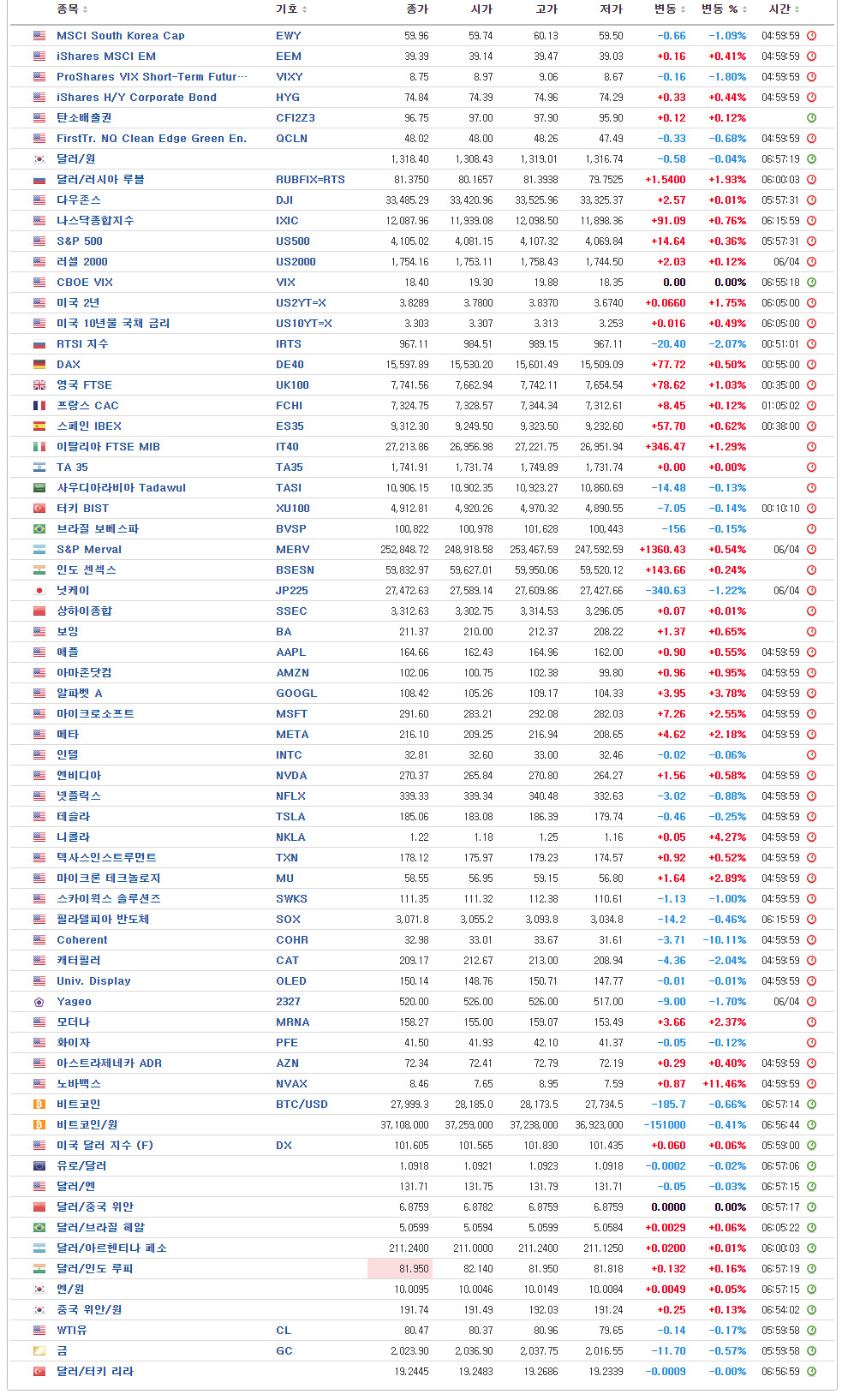 - MSCI 한국지수 ETF: $59.96 (-0.66, -1.09%)