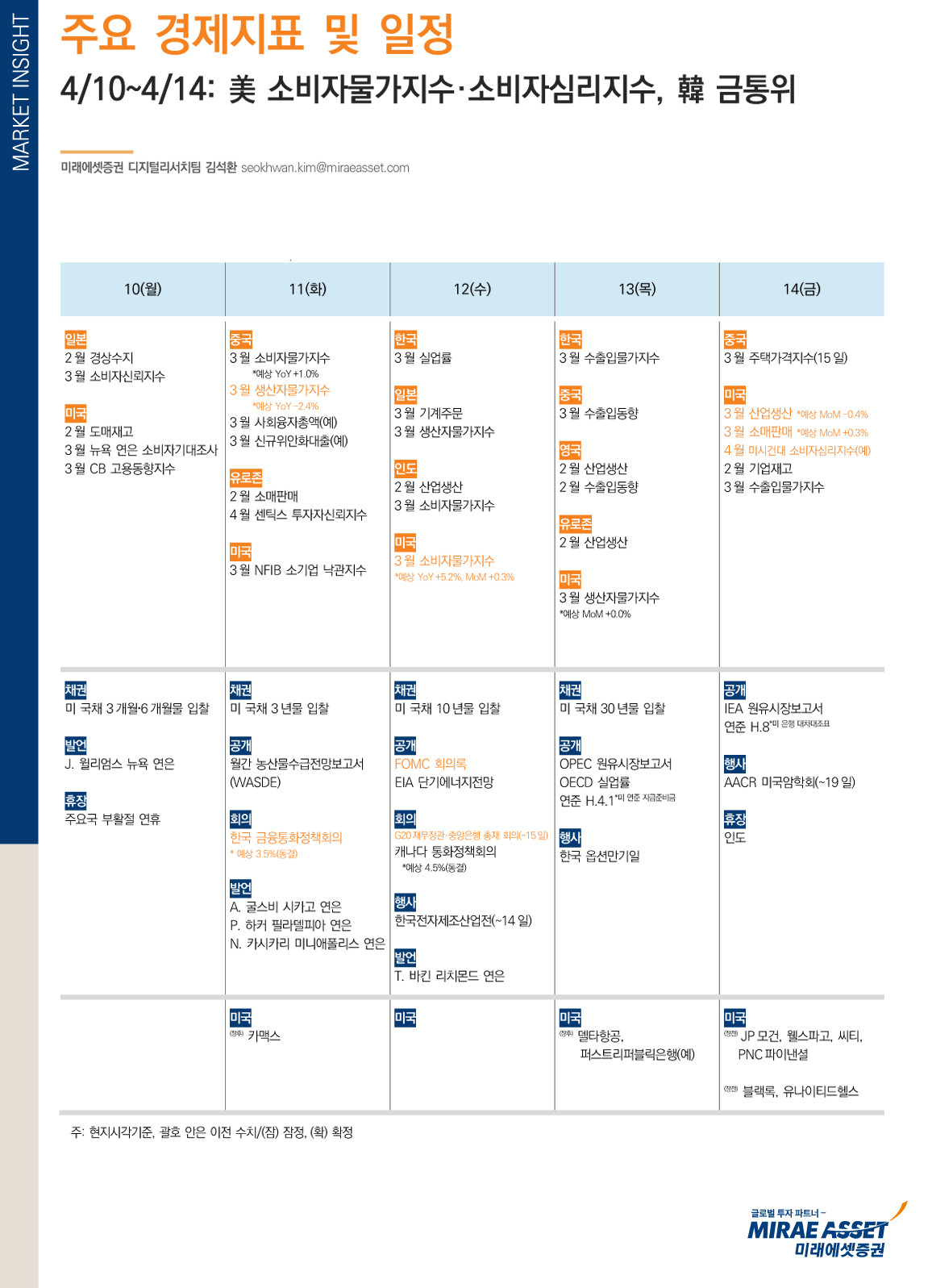 04/10 한국 증시: 달러 강세 및 금리 급등 영향으로 매물 소화 전망