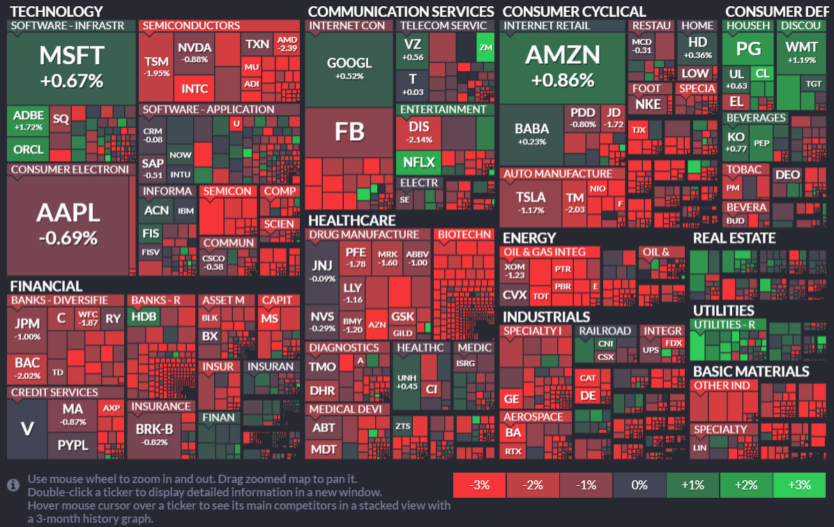 ☑️장초반 관망세로 시작한 증시는 국채금리 안정화에도 불구하고 이내 중소형 성장주 중심으로 매물 출회, 나스닥 빅테크 들은 상대적으로 버티다가 오후 들어 옐런+파월의 의회증언이 특별한 언급없이 끝나며 전체 증시와 함께 하락세 마감