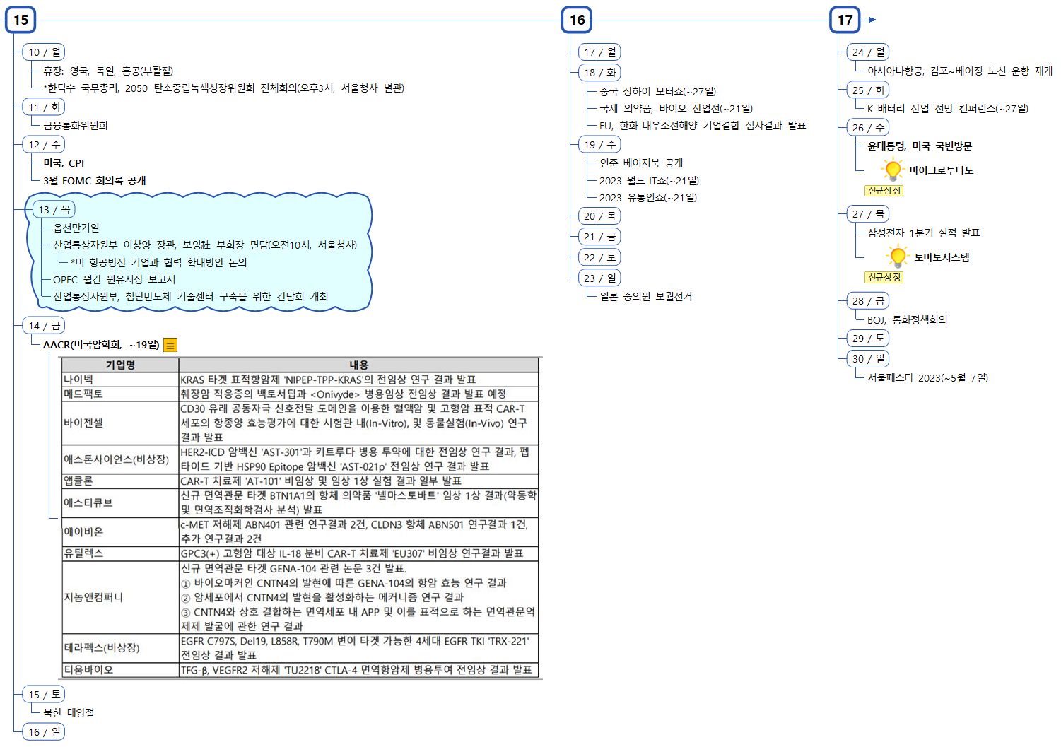 | 4월 17일(월) 증시캘린더 / 해외마감시황 (1) | 2023.04.17 |