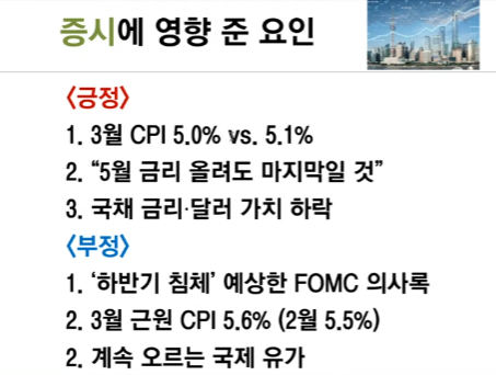 (1) 3월 FOMC 의사록에서 올 연말 약한 경기침체가 언급되며 주가가 하락했습니다.