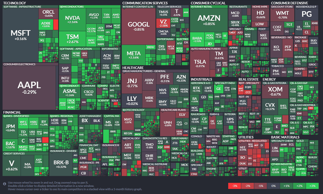 | DOW | 33,348.6 | 48.0 | 0.1% | 19/11/0 |
