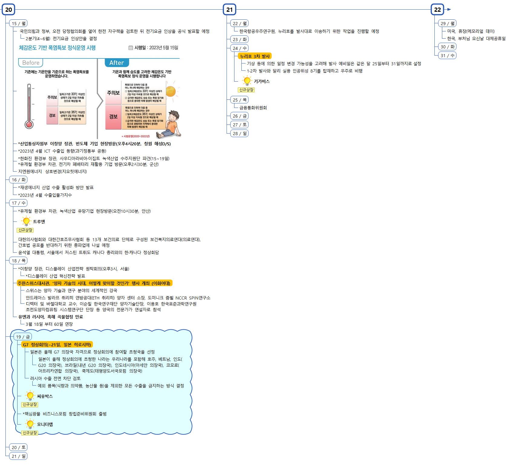 | 5월 22일(월) 증시캘린더 / 해외마감시황 (1) | 2023.05.22 |