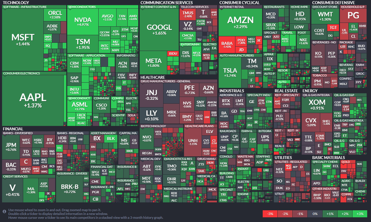 (1) AI 관련주들이 나스닥 100지수를 52주 최고로 밀어올렸습니다.