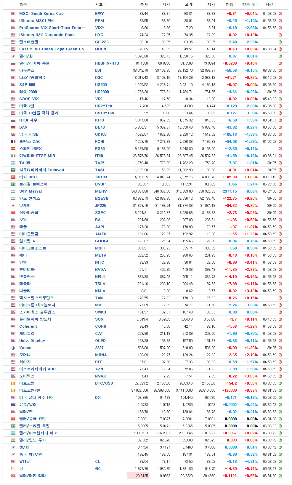 - MSCI 한국지수 ETF: $63.44 (+0.34, +0.54%)