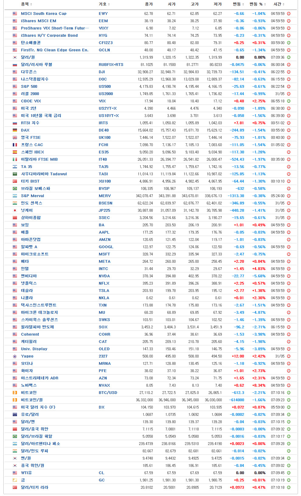 - MSCI 한국지수 ETF: $62.78 (-0.66, -1.04%)