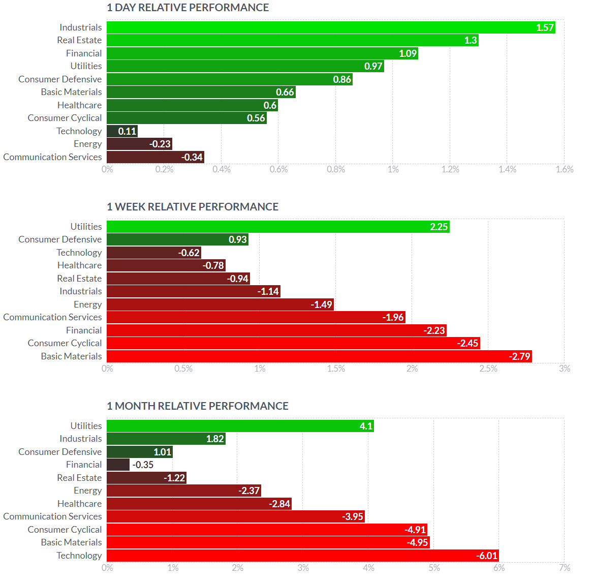 - 커뮤니케이션(-0.33%), 기술(-0.07%)를 제외한 금융(+1.57%), 산업재(+1.56%), 소재(+1.41%) 등 전 업종에서 강세