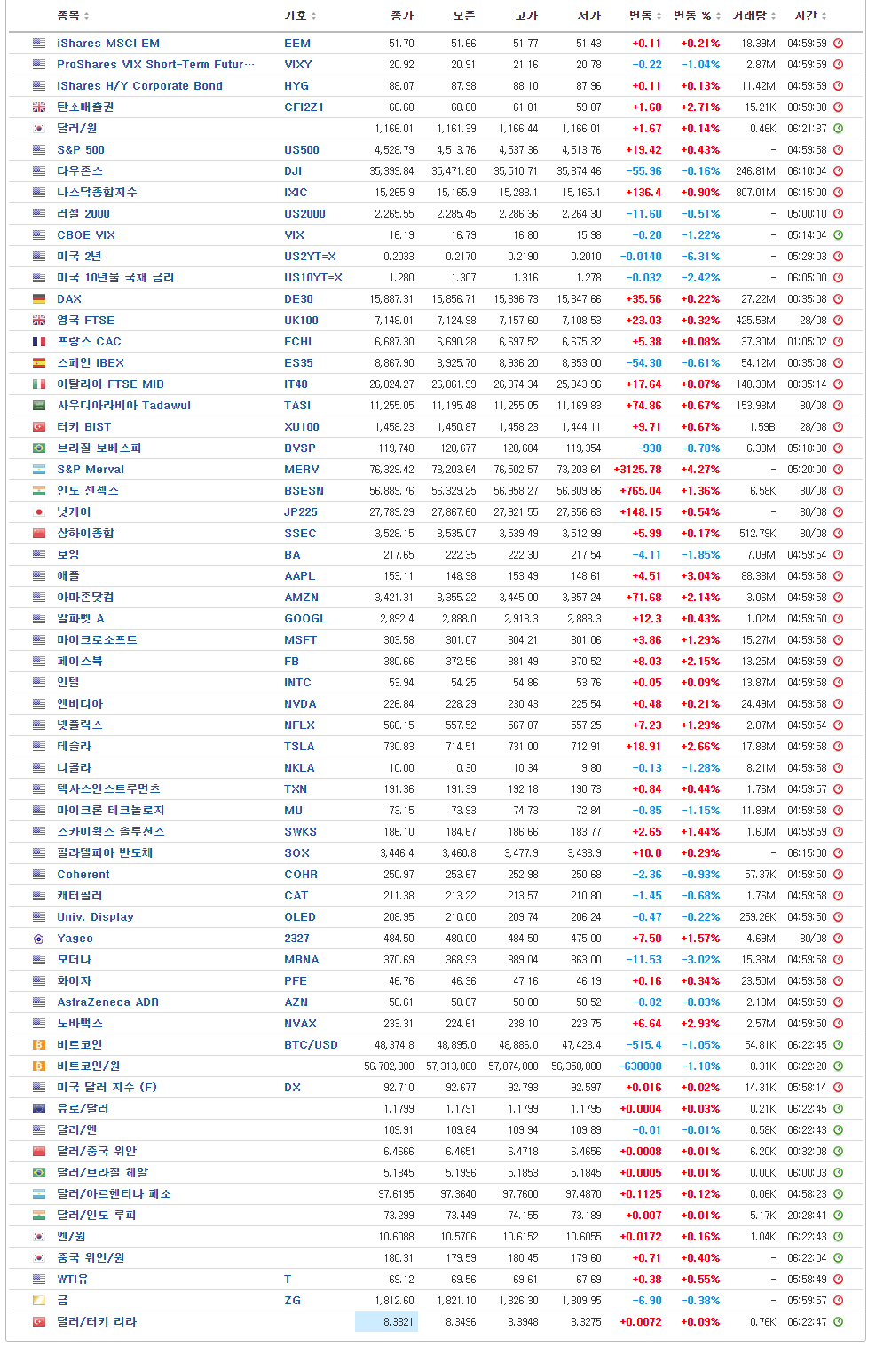 [글로벌시장 지표/8월 30일 오전 6시 현재]