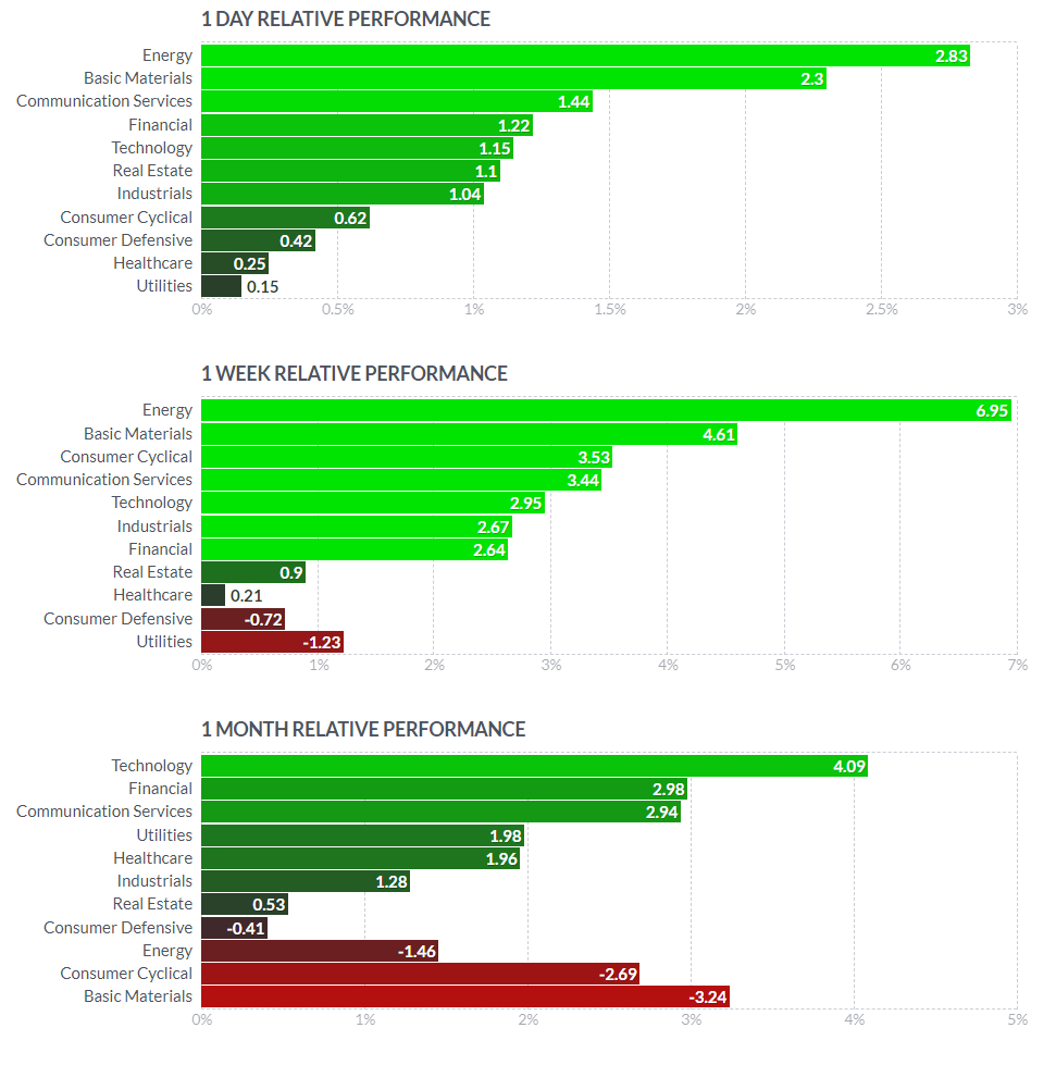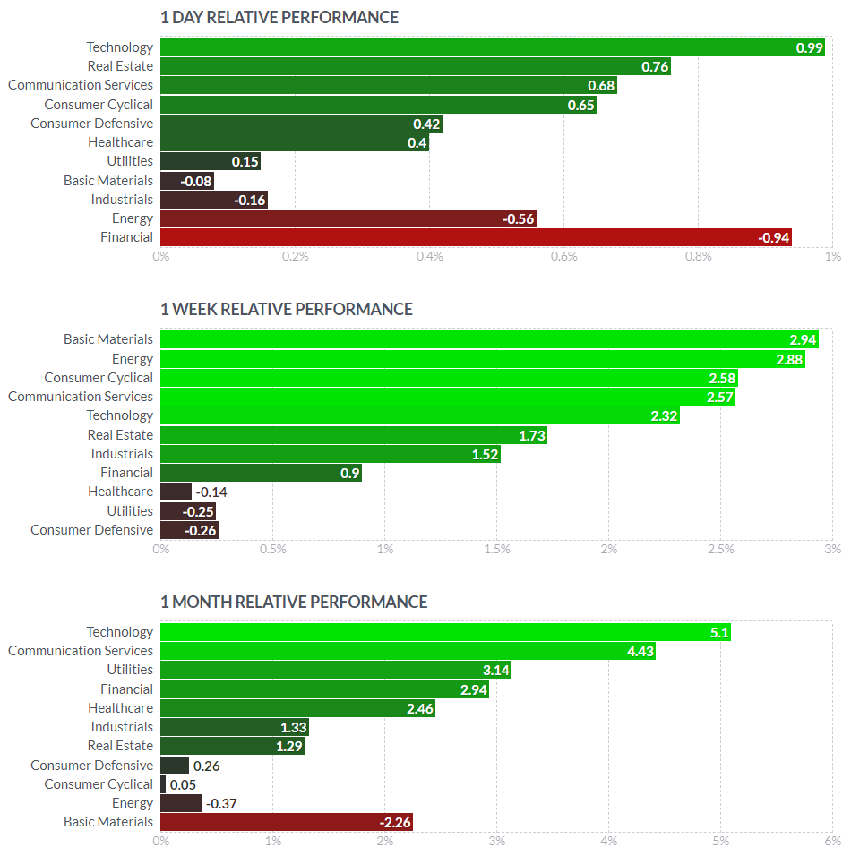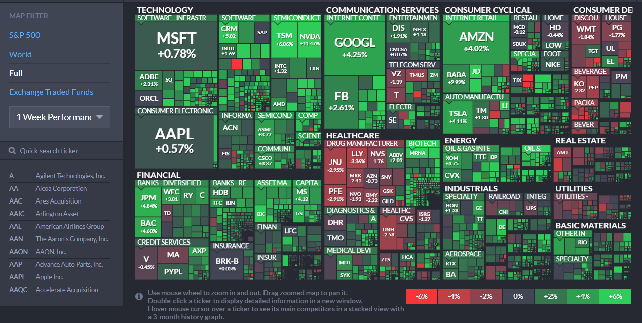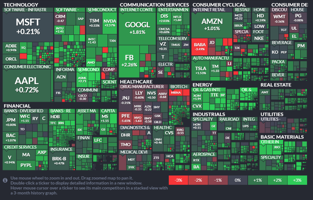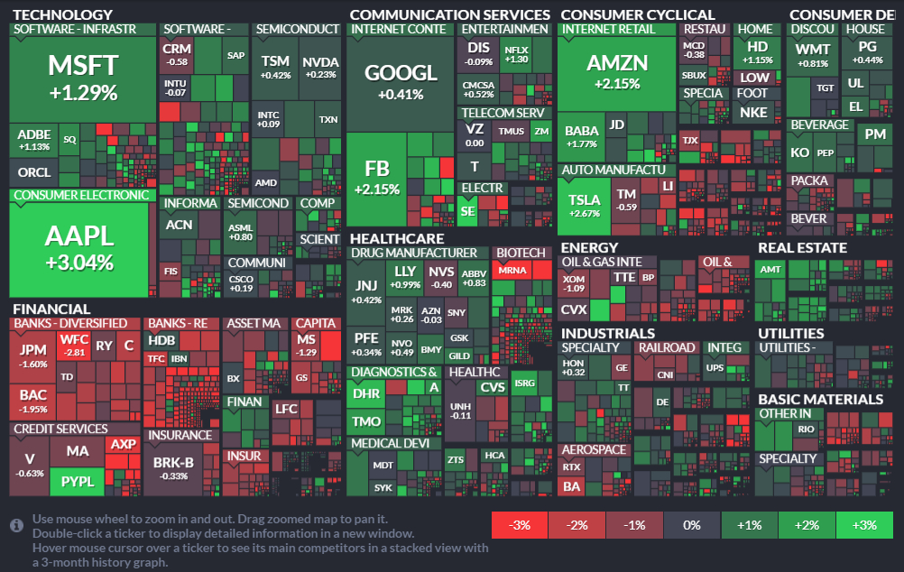 기술주 중심의 상승세가 두드러졌다. 주요 기술주인 팡(FAANG) 종목은 모두 상승했다. 애플은 3.04% 올라 두드러진 성장률을 보였고 페이스북, 아마존은 모두 2%대 올랐다.
