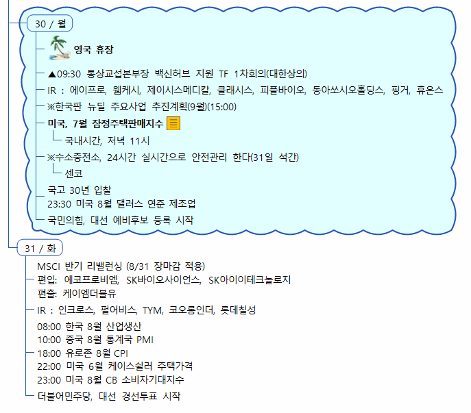 1) 증시캘린더는 개인적으로 관련된 소식을 확인후 작성한 일정이라 변동 또는 오류의 소지가 있습니다.