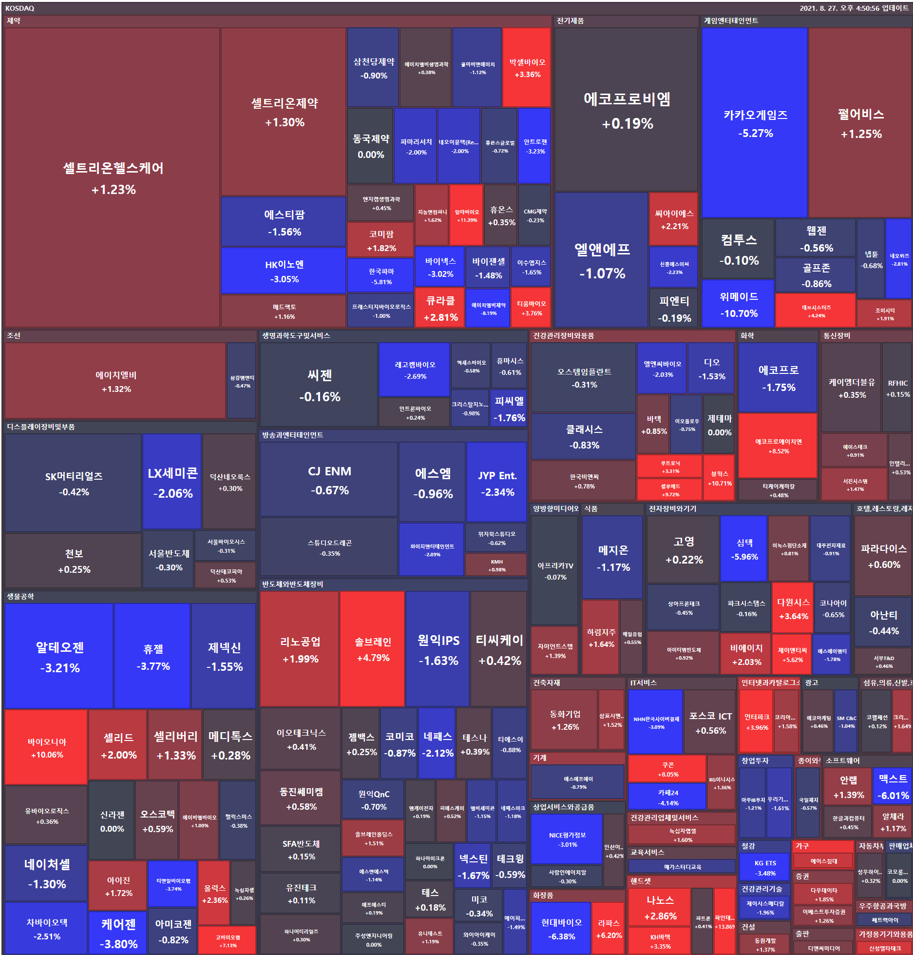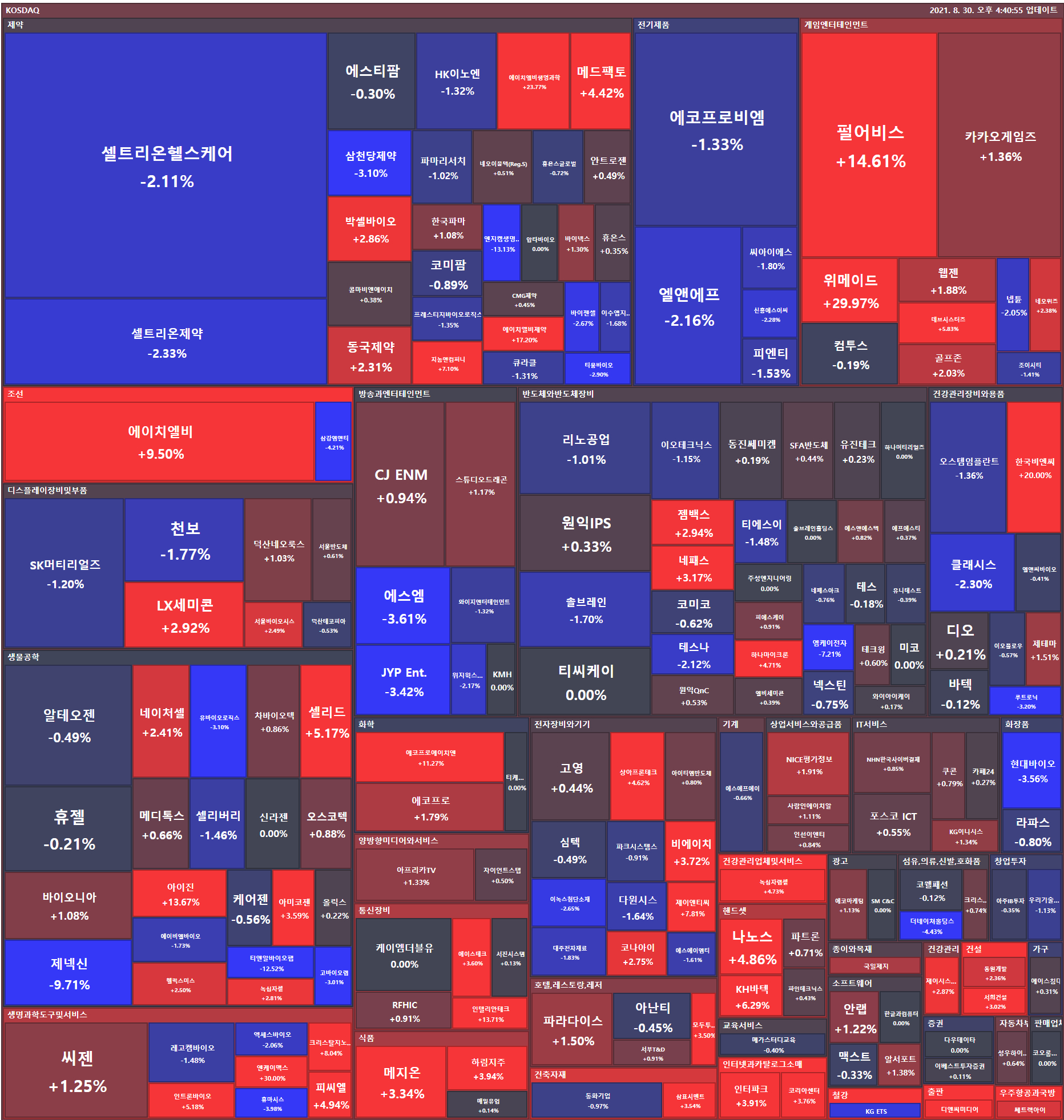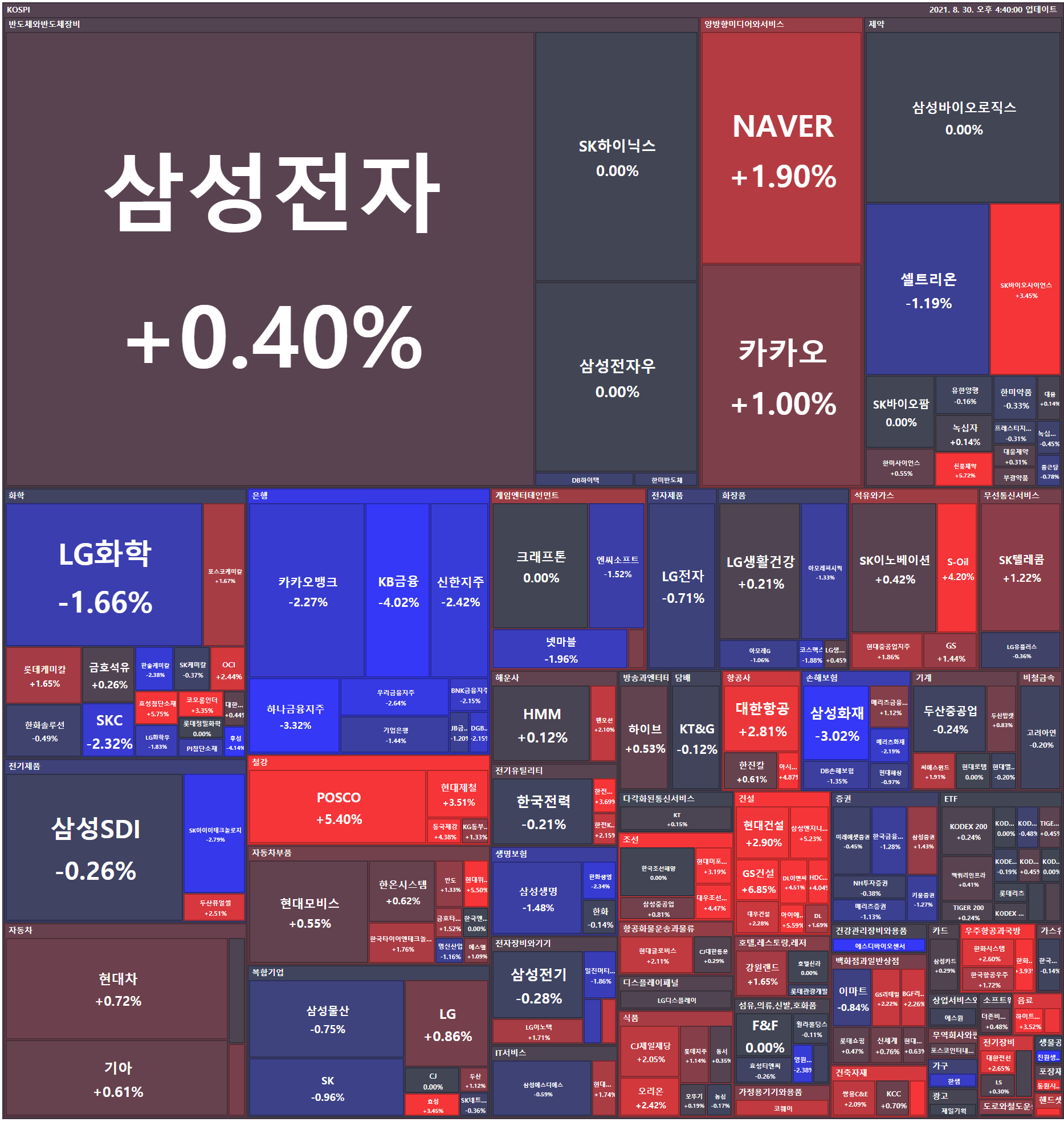 금일 섹터별 ETF는 IT(XLK/+1.1%), 부동산(VNQ/+1.0%), 자유소비재(XLY/+0.9%) 섹터가 상승 하였으며, 에너지(XLE/-1.2%)와 금융(XLF/-1.4%) 섹터는 하락 마감. 금일 IT 섹터는 대형 기술주인 마이크로소프트(MSFT/+1.3%), 애플(AAPL/3.0%)의 약진과 글로벌 결제업체인 페이팔(PYPL/+3.6%)이 주식 중개 서비스에 진출할 것이라는 소식에 강세로 마감하였으며, 자유소비재(XLY) 섹터는 아마존(AMZN/+2.2%)이 선구매 후결제 서비스를 제공하는 어펌(AFRM/+46.7%)과 파트너십을 체결했다는 소식에 섹터 상승 견인. 반면 유가의 공급 축소 우려를 야기한 허리케인 아이다의 피해가 카트리나만큼 강하지 않을 것으로 예상되며 에너지(XLE) 섹터는 1.2% 하락하였으며, 국채금리 하락에 골드만삭스(GS/-1.5%), 뱅크오브아메리카(BAC/-2.0%)와 같은 은행 전반의 주가가 약세를 시현하며 금융(XLF) 섹터는 1.4% 하락 마감.