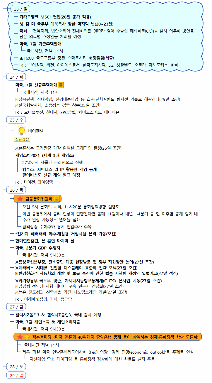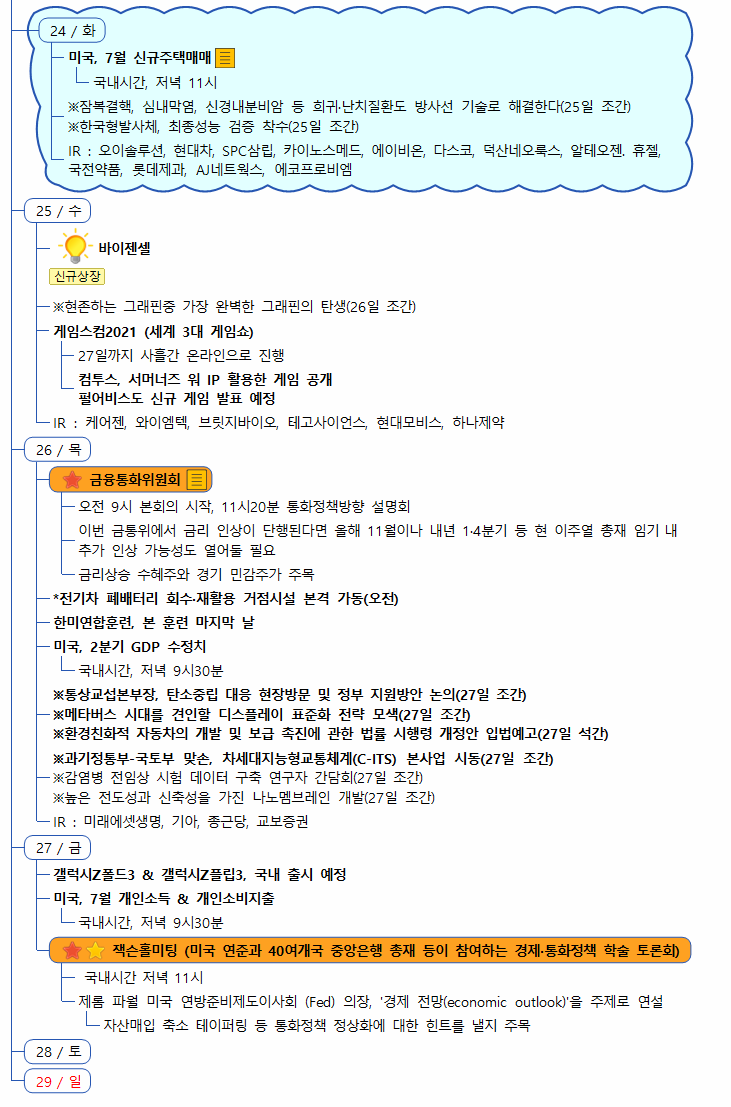 | 8월 25일(수) 증시캘린더 / 해외마감시황 (0) | 2021.08.25 |