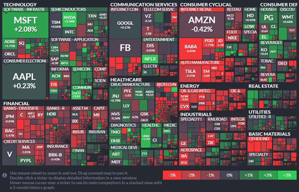 | DOW | 35,335.71 | 215.63 | 0.6% | 21/9/0 |