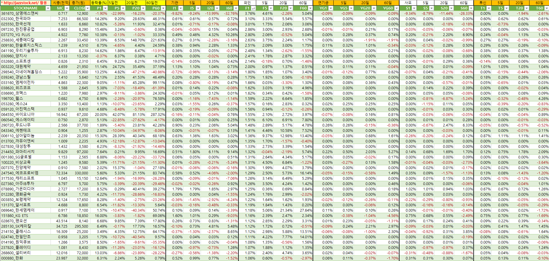| 분류 | 티커 | 현재가 | 등락률 | t신호 | 수익률 | ||