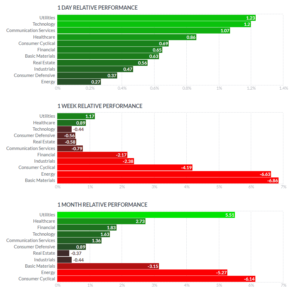 | 유틸리티 | XLU | 69.0 | -1.3% | 햇빛 | 4.0% | 7.4% | 21.0% |