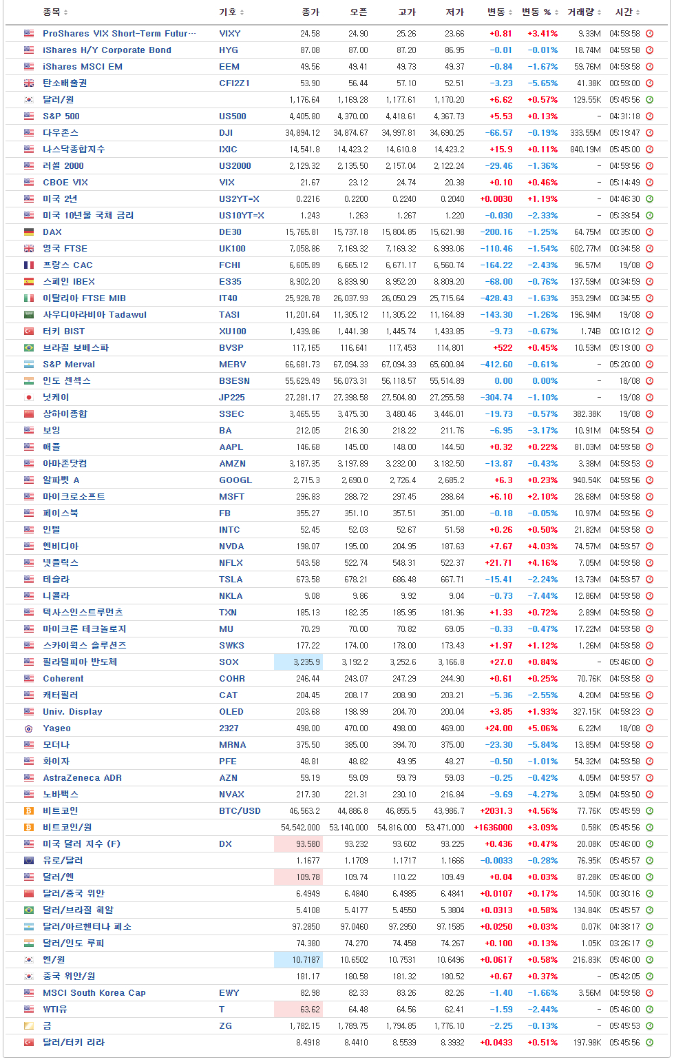 [글로벌시장 지표/8월 24일 오전 6시 현재]