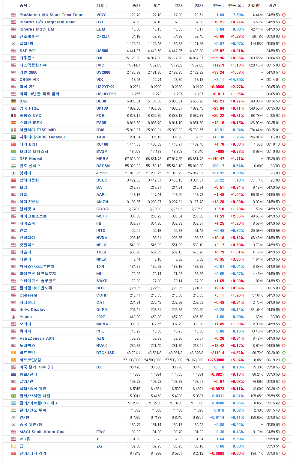 | VIX지수 | 17.14 | -1.42 | -7.7% |