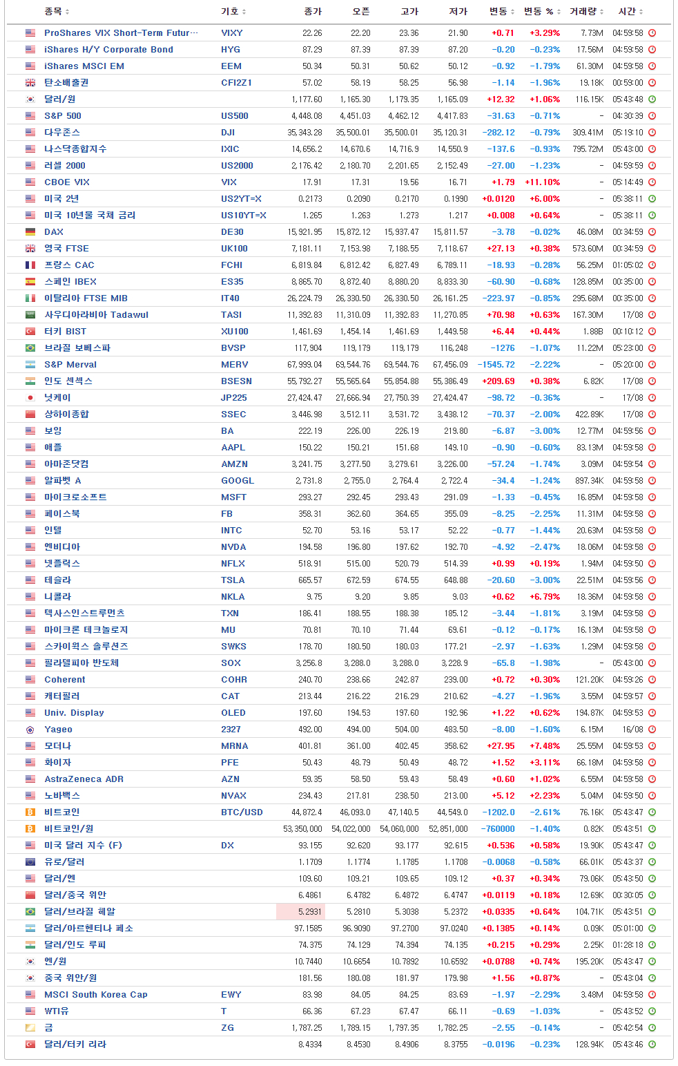 U.S. Market Closing – 05:00 기준
