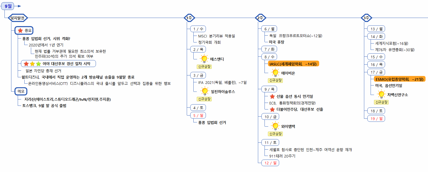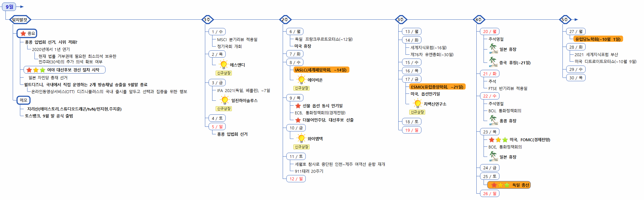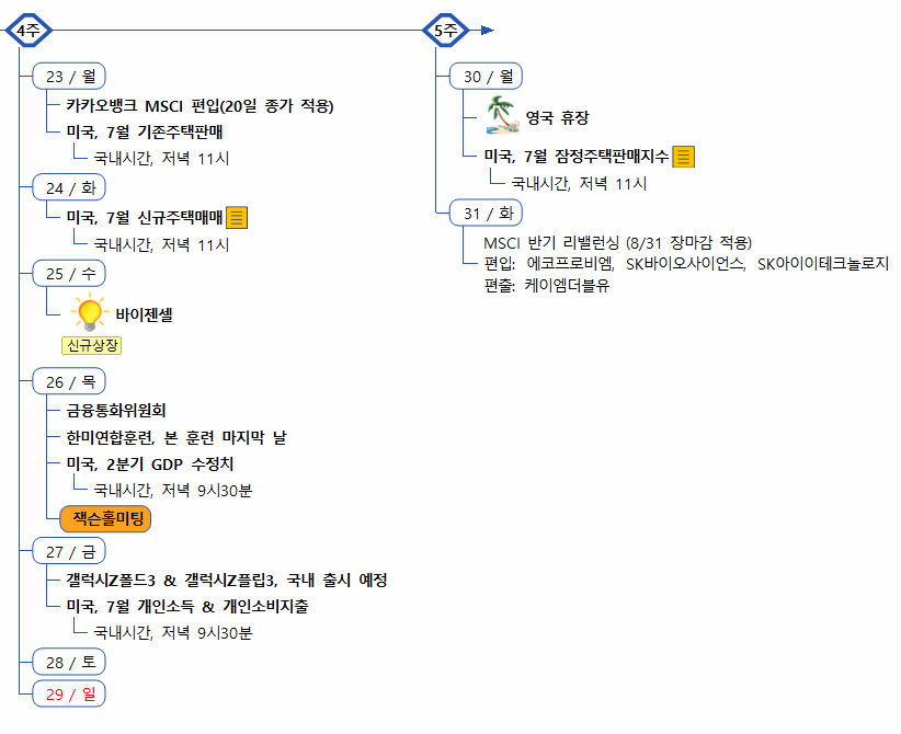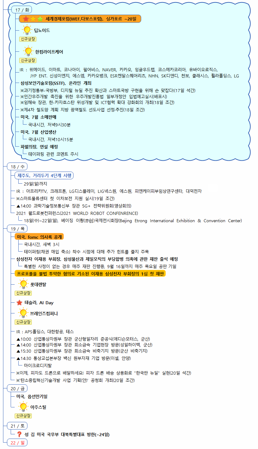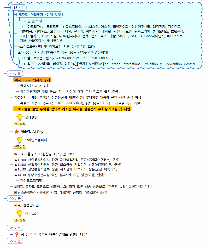 1) 증시캘린더는 개인적으로 관련된 소식을 확인후 작성한 일정이라 변동 또는 오류의 소지가 있습니다.