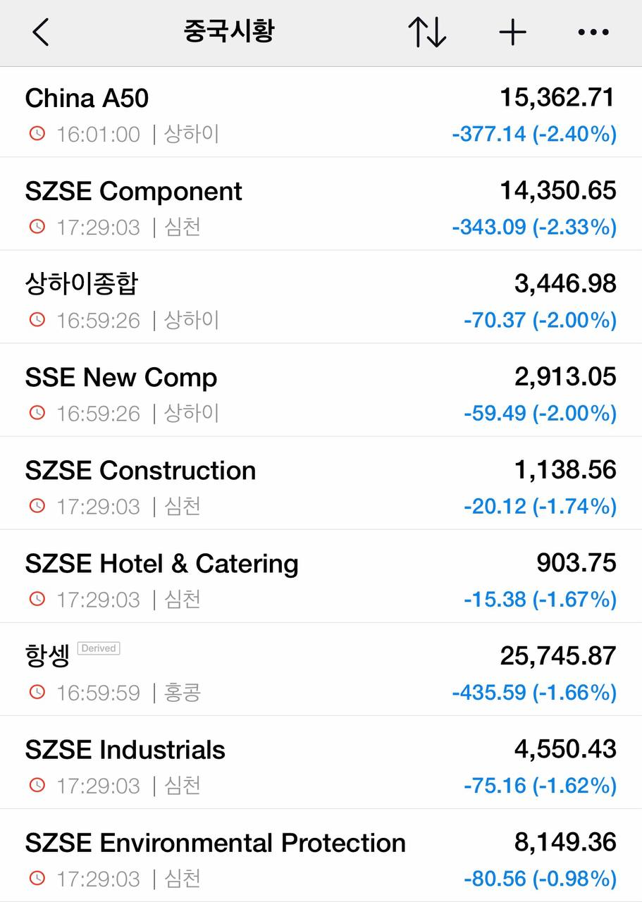 | 지수 | 종가 | 등락폭 | 등락률 | 상승/하락/보합 |