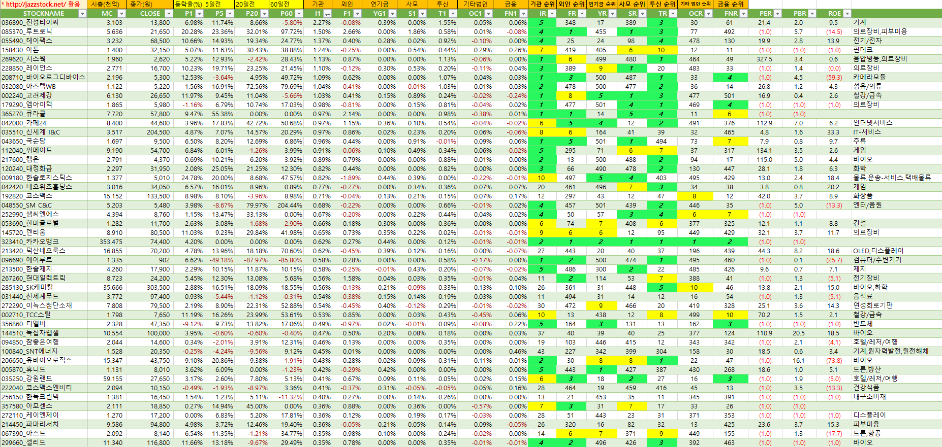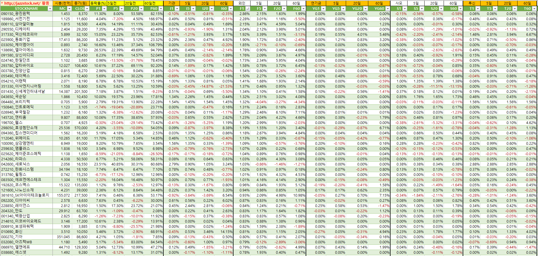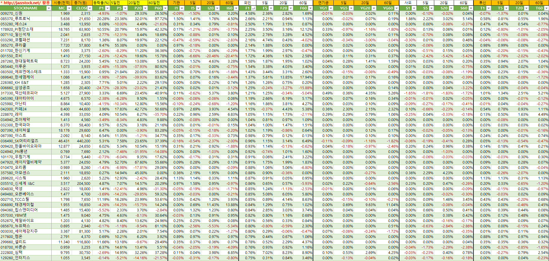| 분류 | 티커 | 현재가 | 등락률 | t신호 | 수익률 | ||