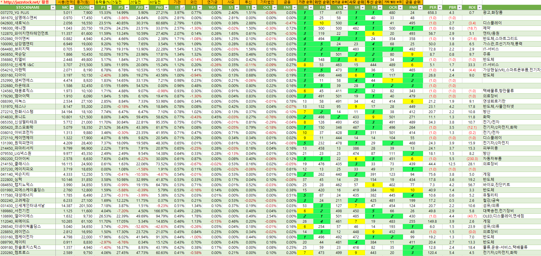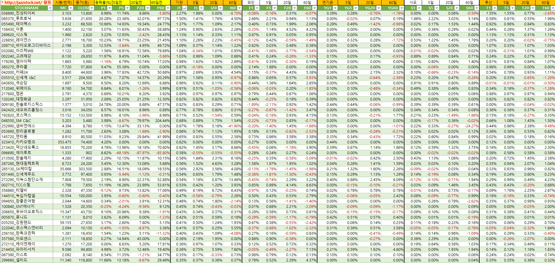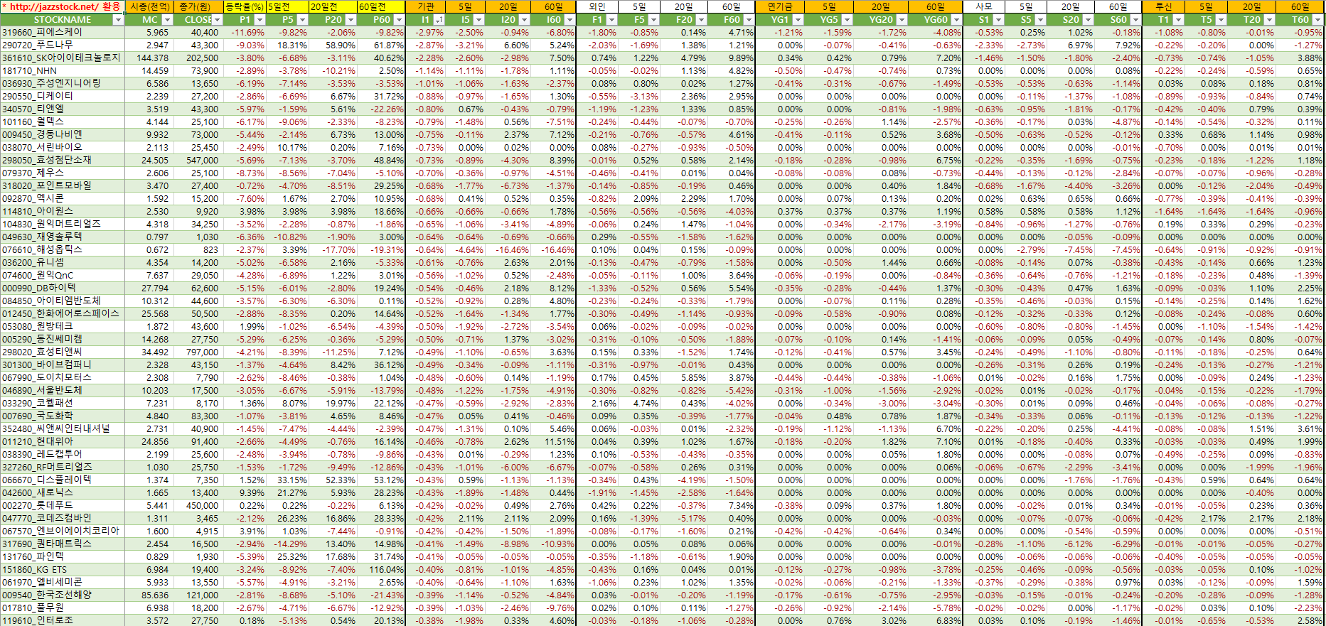 | 분류 | 티커 | 현재가 | 등락률 | t신호 | 수익률 | ||