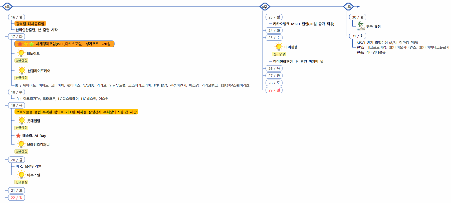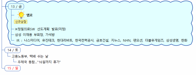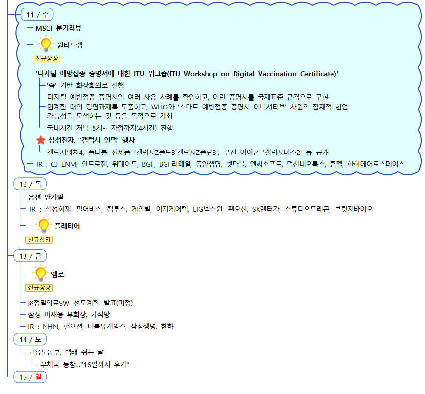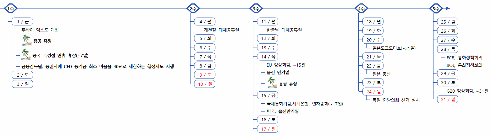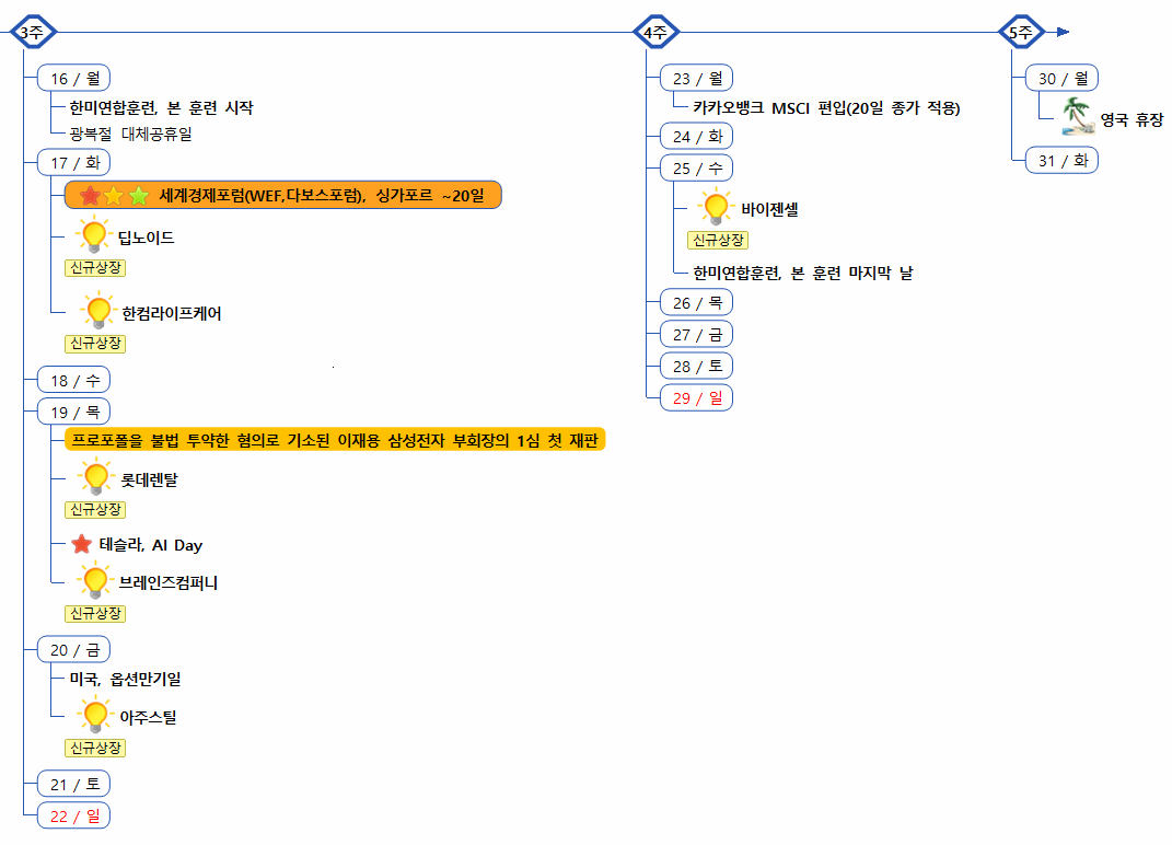 1) 증시캘린더는 개인적으로 관련된 소식을 확인후 작성한 일정이라 변동 또는 오류의 소지가 있습니다.