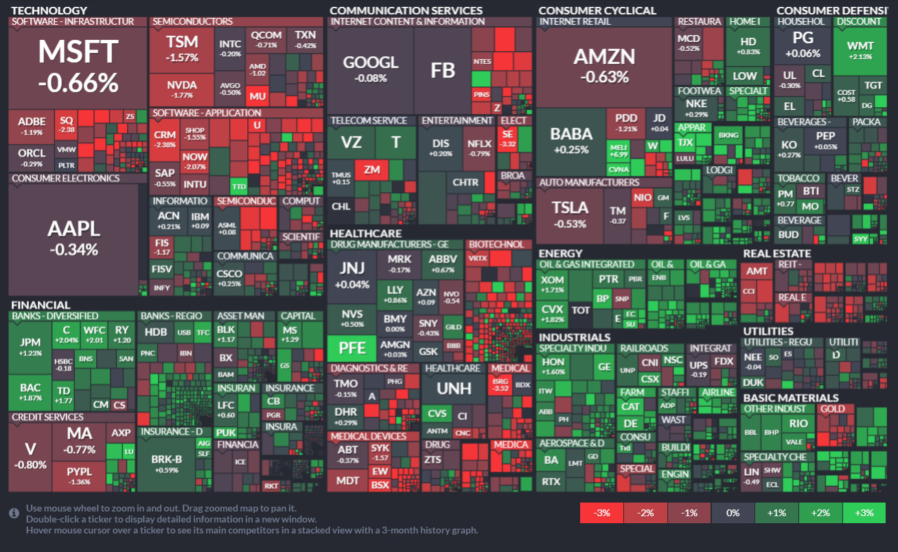| DOW | 35,499.85 | 14.88 | 0.0% | 16/14/0 |
