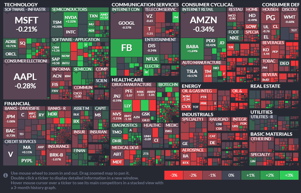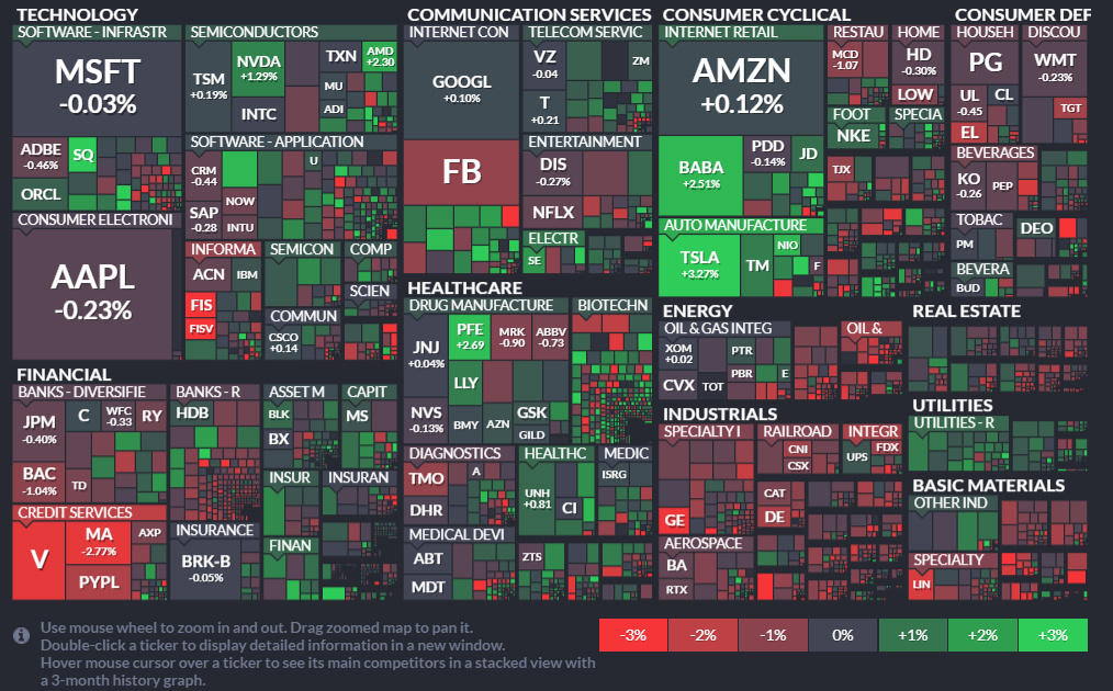 주요 기술주인 팡(FAANG) 종목은 엇갈린 모습을 보였다. 페이스북이 1.22% 가장 큰 폭의 하락률을 기록했고 애플, 넷플릭스 모두 약보합권에서 거래를 마쳤다. 반면 아마존과 구글은 각각 0.12%, 0.10% 강보합세를 나타냈다.