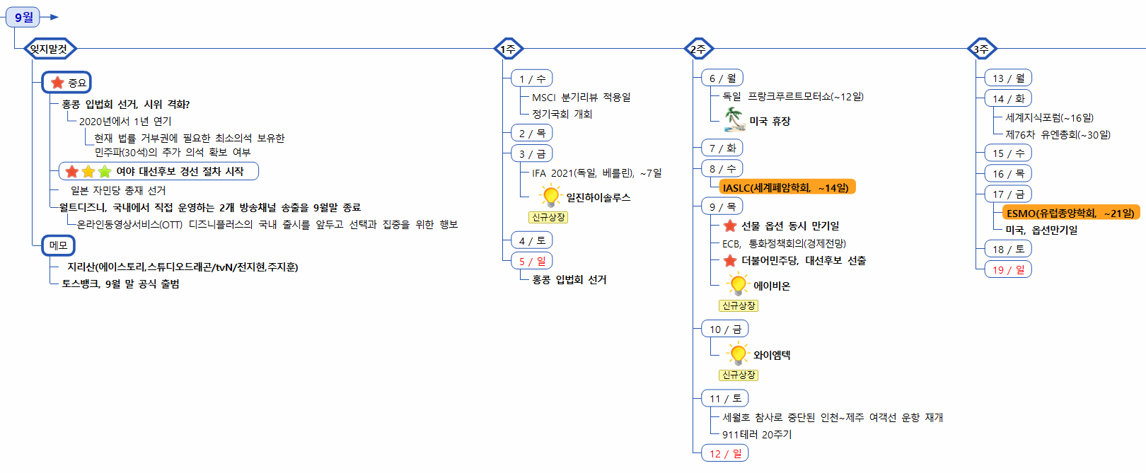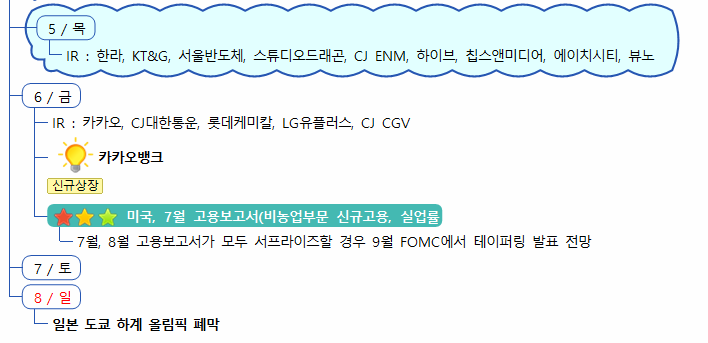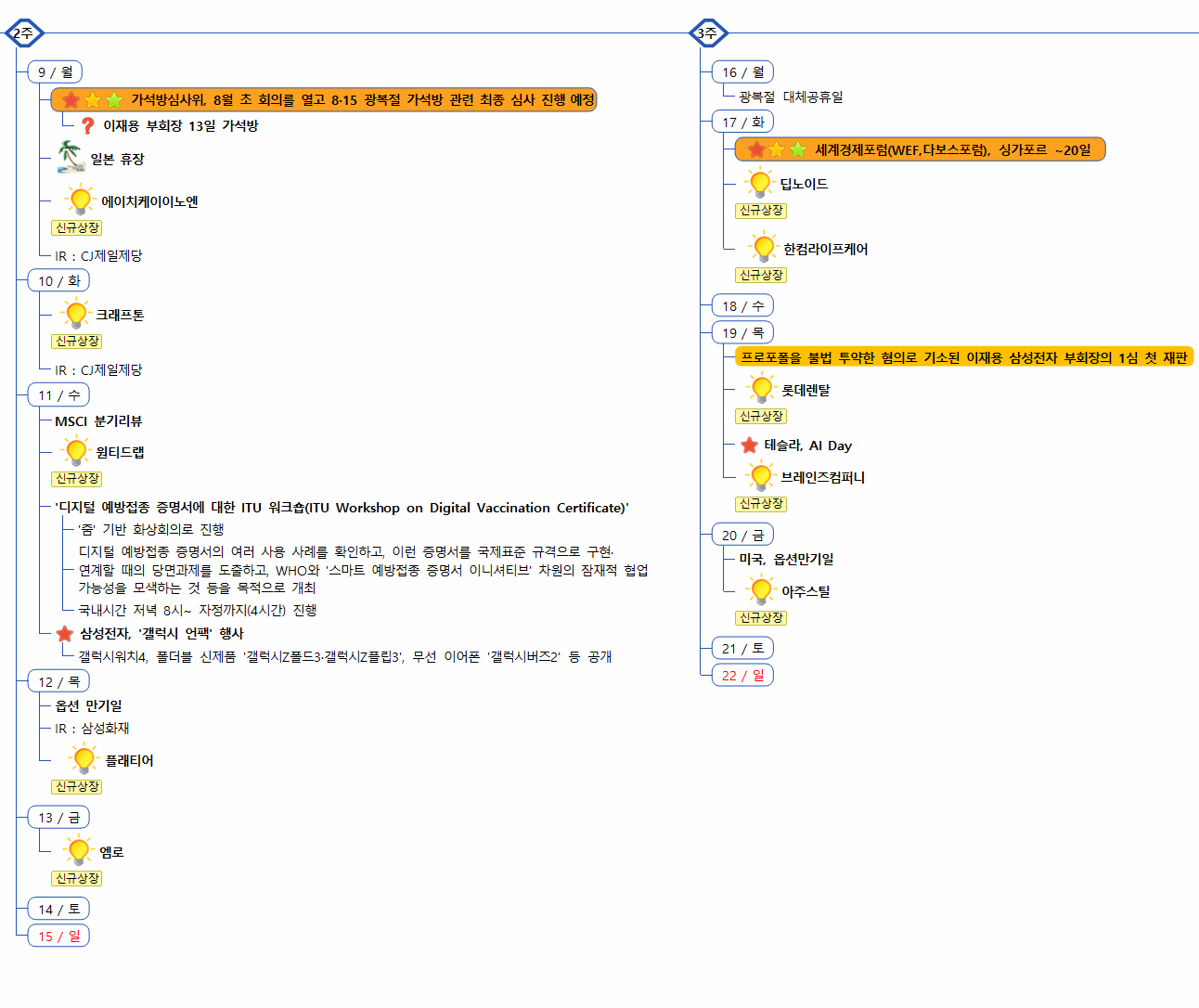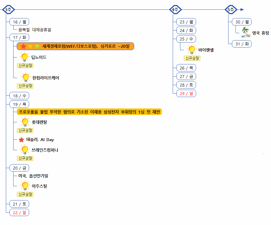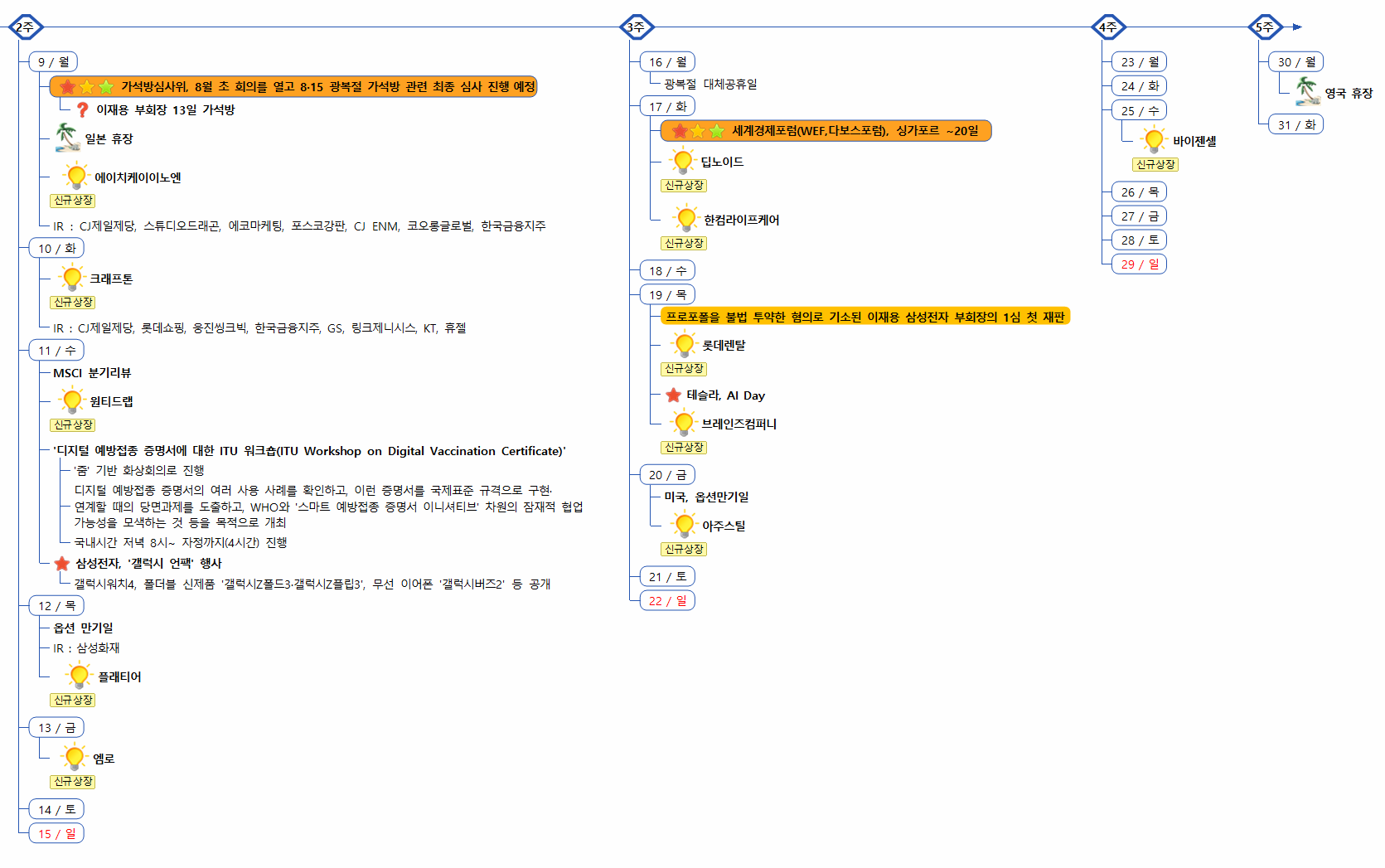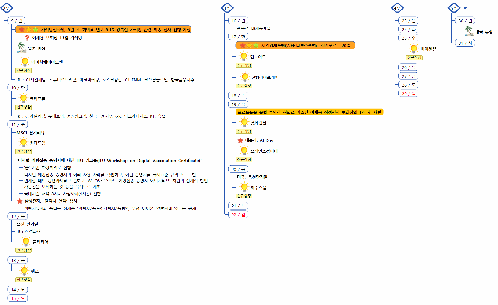 1) 증시캘린더는 개인적으로 관련된 소식을 확인후 작성한 일정이라 변동 또는 오류의 소지가 있습니다.