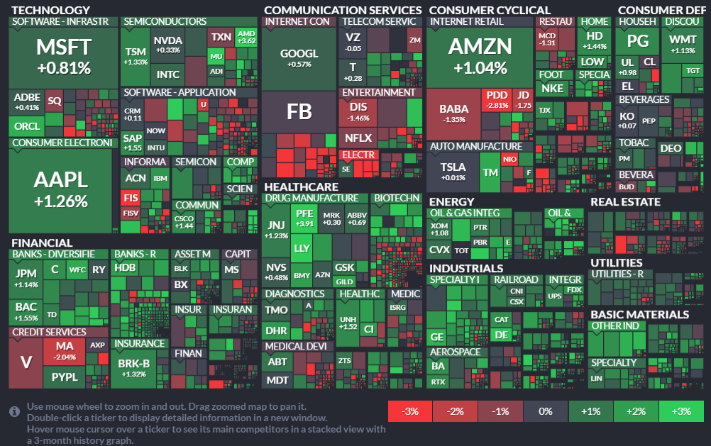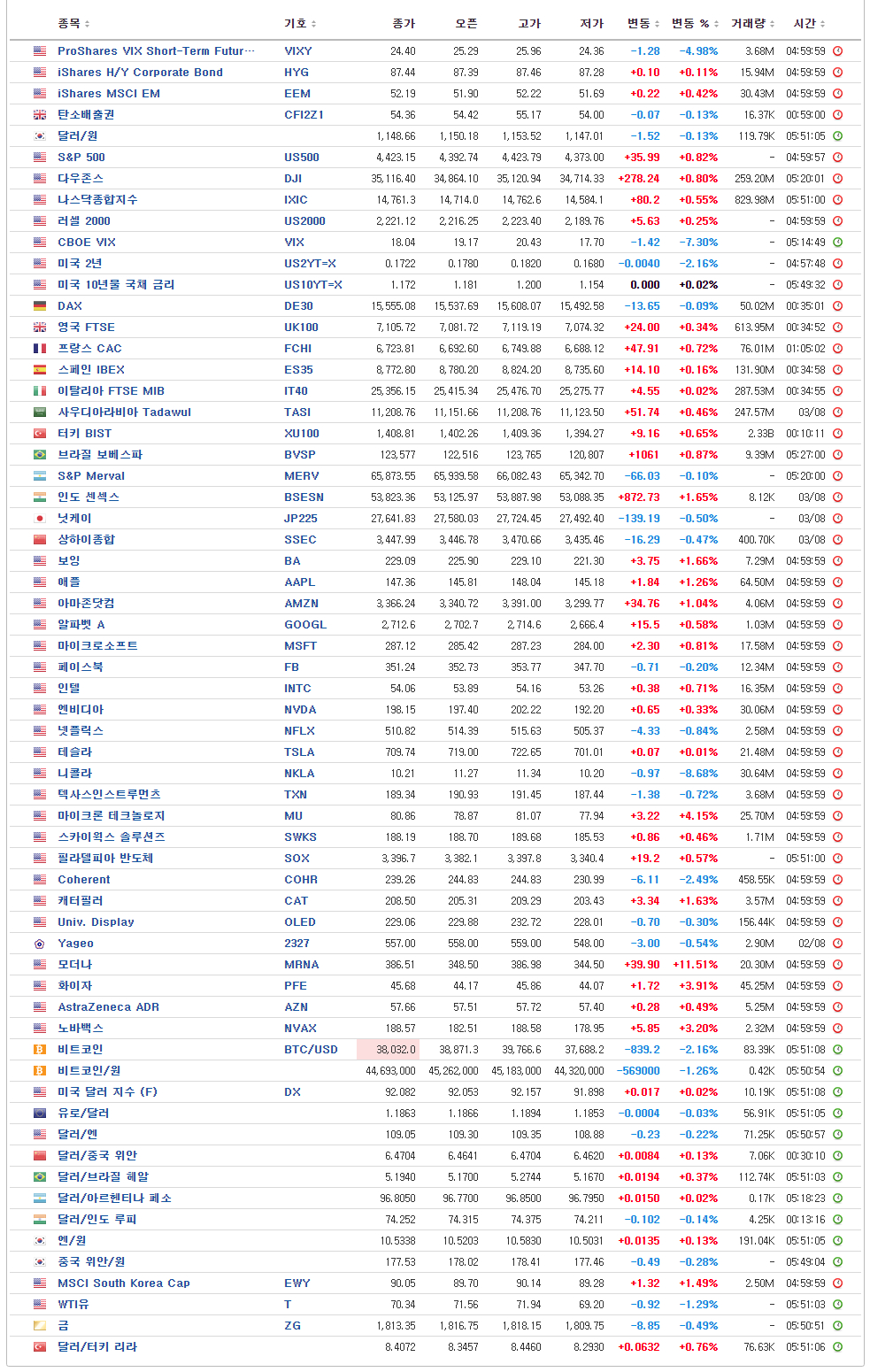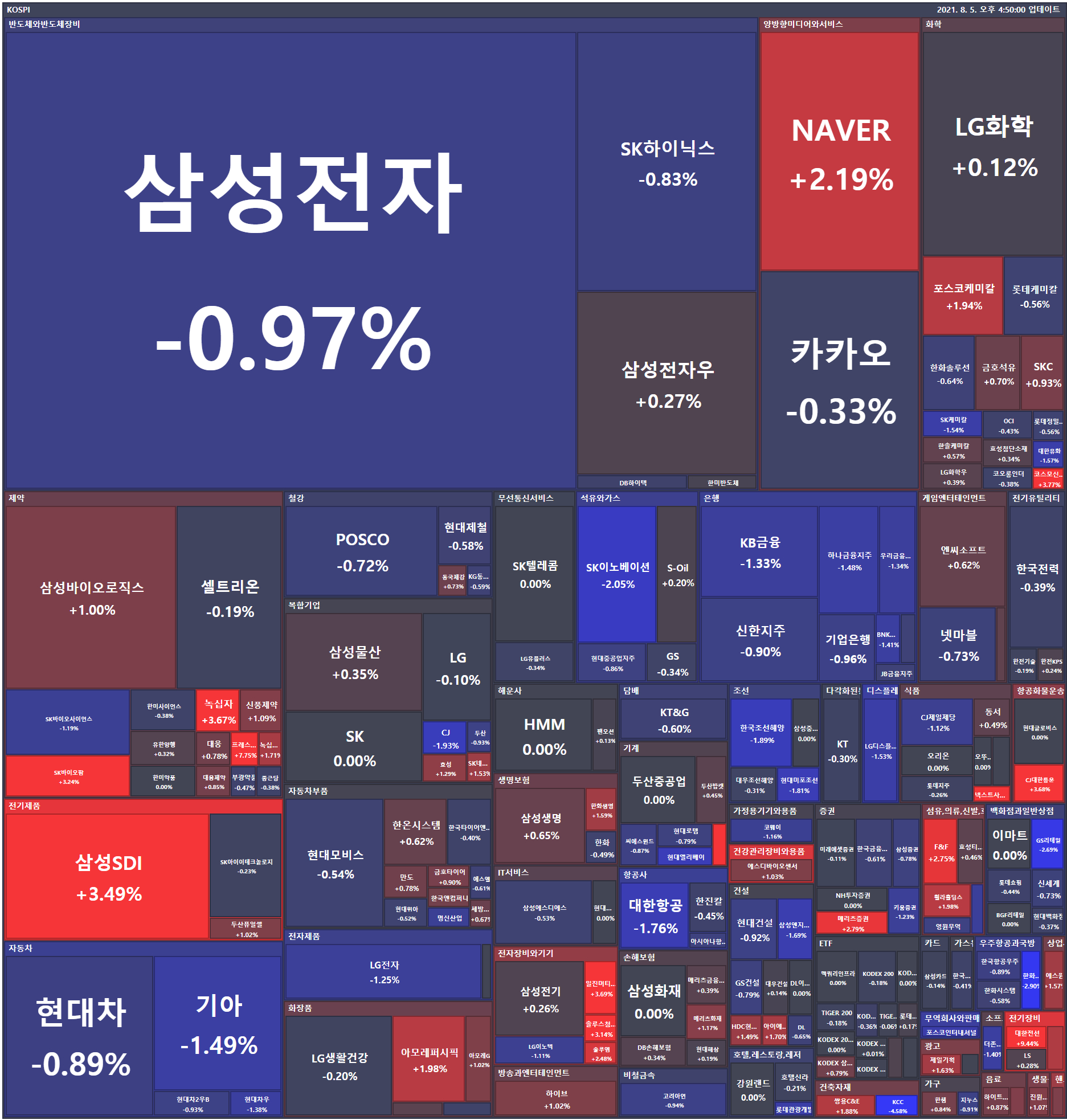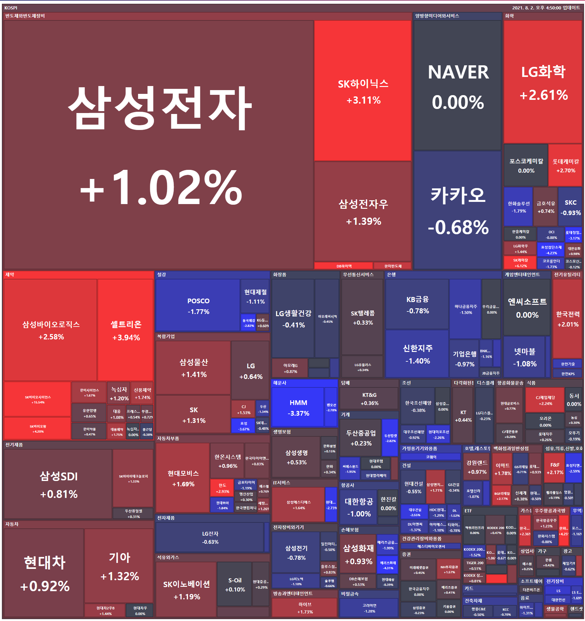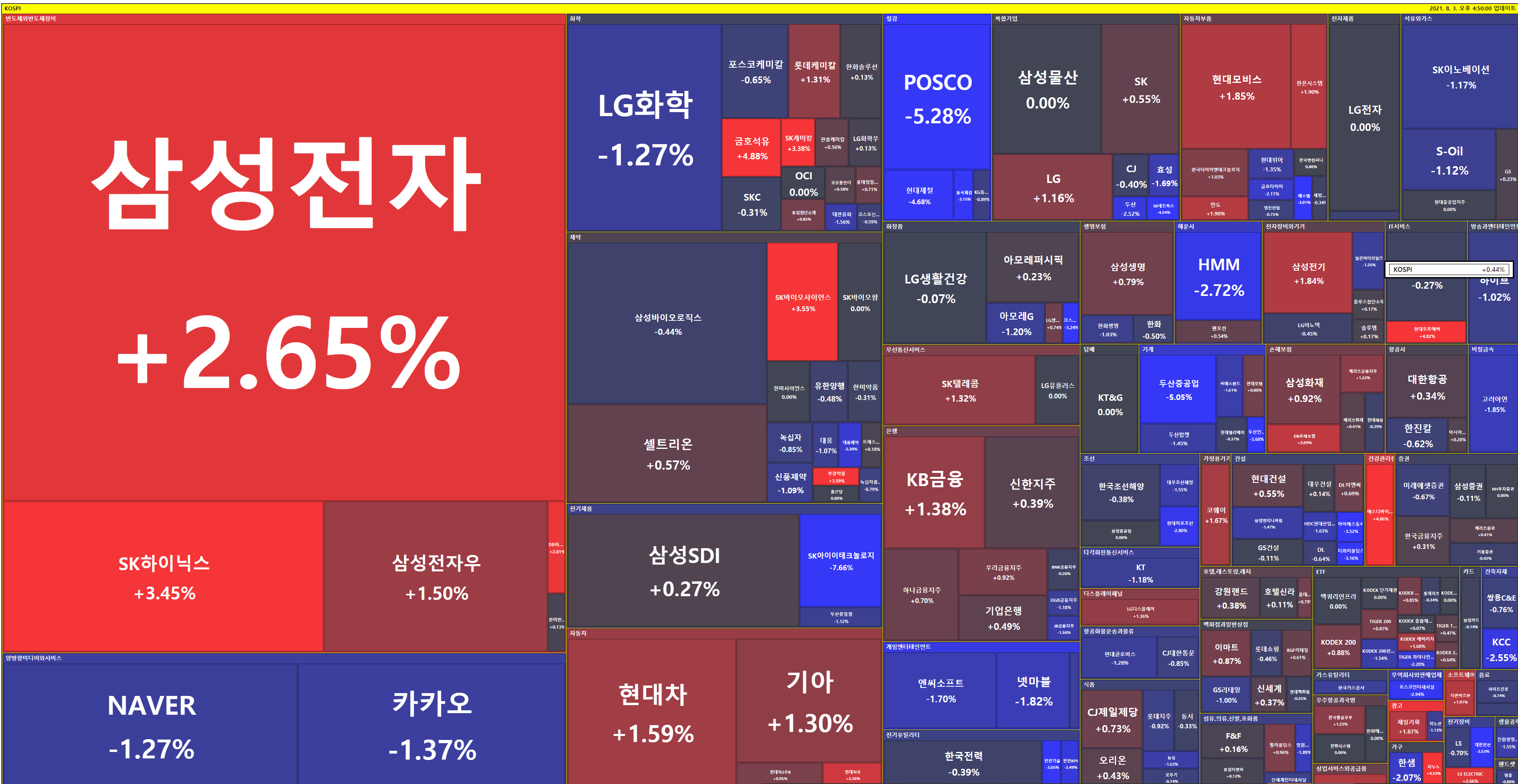아침 상승세로 시작한 시장은 오전 NYC(뉴욕시)가 특정 실내활동시 백신접종을 강제할 것이라고 발표하면서(코로나 우려) 주요지수 모두 상승폭을 반납하였습니다. 그러나 이후 장마감까지 저가매수세가 꾸준히 유입되며 주요지수 모두 상승마감하였습니다. S&P500은 종가기준 사상최고가를 다시 경신했습니다.