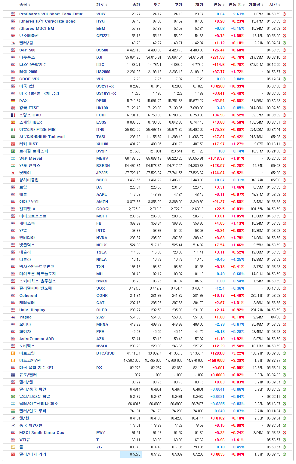 미국 증시는 개선된 실업 지표와 기업실적 어닝 서프라이즈에 상승세로 마감. 이날 발표된 미국의 주간 실업 보험 청구자 수가 2 연속 감소하며 증시 상승 압력으로 작용. 지난달 7월31일로 끝난 한 주간 실업 보험 청구자 수가 전주 대비 1만4천 명 감소한 38만5천 명을 기록, 지난해 3월 이후 처음으로 300만 명을 하회. 지난 6월 미국의 무역적자는 예상치보다 소폭 증가해 역대 최대 규모를 경신. 상무부가 발표한 6월 무역적자는 전월 대비 6.7% 오른 757억 달러를 기록. 미국 기업들은 견조한 2분기 실적을 발표하며 증시 상승을 지지. 차량 공유업체 우버(UBER)가 올해 2분기 순이익을 11억4천만 달러 기록하며 흑자 전환하며 3.1% 상승, 제약기업 리제네톤 파마슈티컬스(REGN)이 컨센서스를 상회하는 실적을 발표, 코로나 19 예방 및 치료용 이중 항체 칵테일 요법제의 긴급사용 승인 적용범위를 확대하며 4.1% 상승. 아울러, 미국 바이든 대통령이 이날 탄소 배출과 전기차 이슈에 대해 연설, 전기차 확대에 대해 언급하며 자동차 관련주들이 상승. 증시 전문가들은 기업들의 탄탄한 실적이 주가의 강한 모습으로 이어질 것이라고 전망, 시장은 6일 발표 예정인 미국의 실업률과 비농업부분 고용지표에 주목하고 있는 모습.