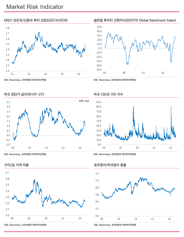 유럽 증시는 기업들의 호실적 지속에 강보합세로 마감. 한편, 이날 발표된 주요 기업의 실적이 시장 예상치를 웃도는 수치를 기록하며 증시 상승의 주요 원인으로 작용. 프랑스 투자은행 소시에트제네랄리(GLE)가 당해 이익 전망치를 상향 조정하며 5.6% 상승, 영국의 석유기업 브리티쉬 페트롤리엄(BP)의 2분기 순이익이 31억23천만 달러를 기록하며 시장예상치를 상회, 2분기 배당금을 4% 인상한 5.46센트로 결정하고 14억 달러 규모의 자사주 매입을 시행한다는 소식에 장 중 6.9% 상승. IBES 레피니티브 데이터에 따르면 현재까지 발표된 STOXX 600 기업 절반 중 66%가 전문가 예상치를 상회하는 실적을 발표. 이날 발표된 경제지표로는 유로존 6월 생산자물가지수(PPI)가 전월 대비 1.4% 상승을 기록하며 시장 전망치인 전월 대비 1.5% 상승을 소폭 하회, 에너지를 제외한 PPI는 6월 전월 대비 0.7% 상승. 공급망 혼란이 지속되는 가운데 코스트 인플레 상승이 현재 가격 동향의 핵심요인으로 전반적으로 가격 상승 압력을 가하는 것으로 보여.
