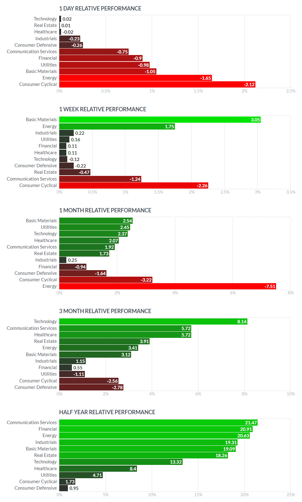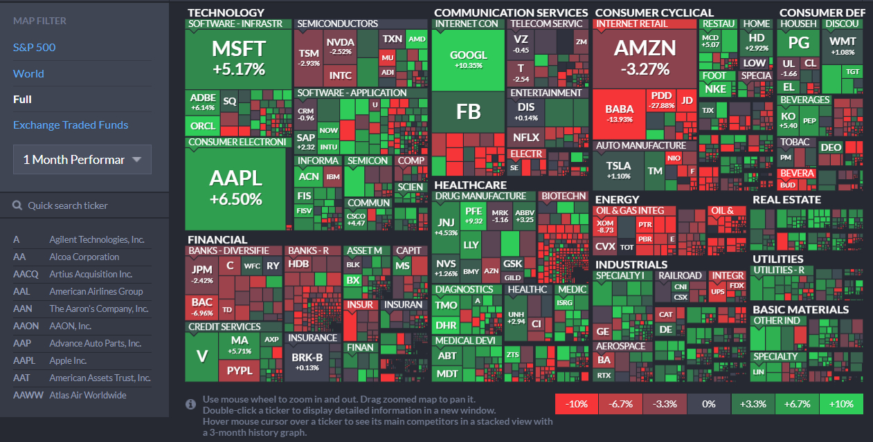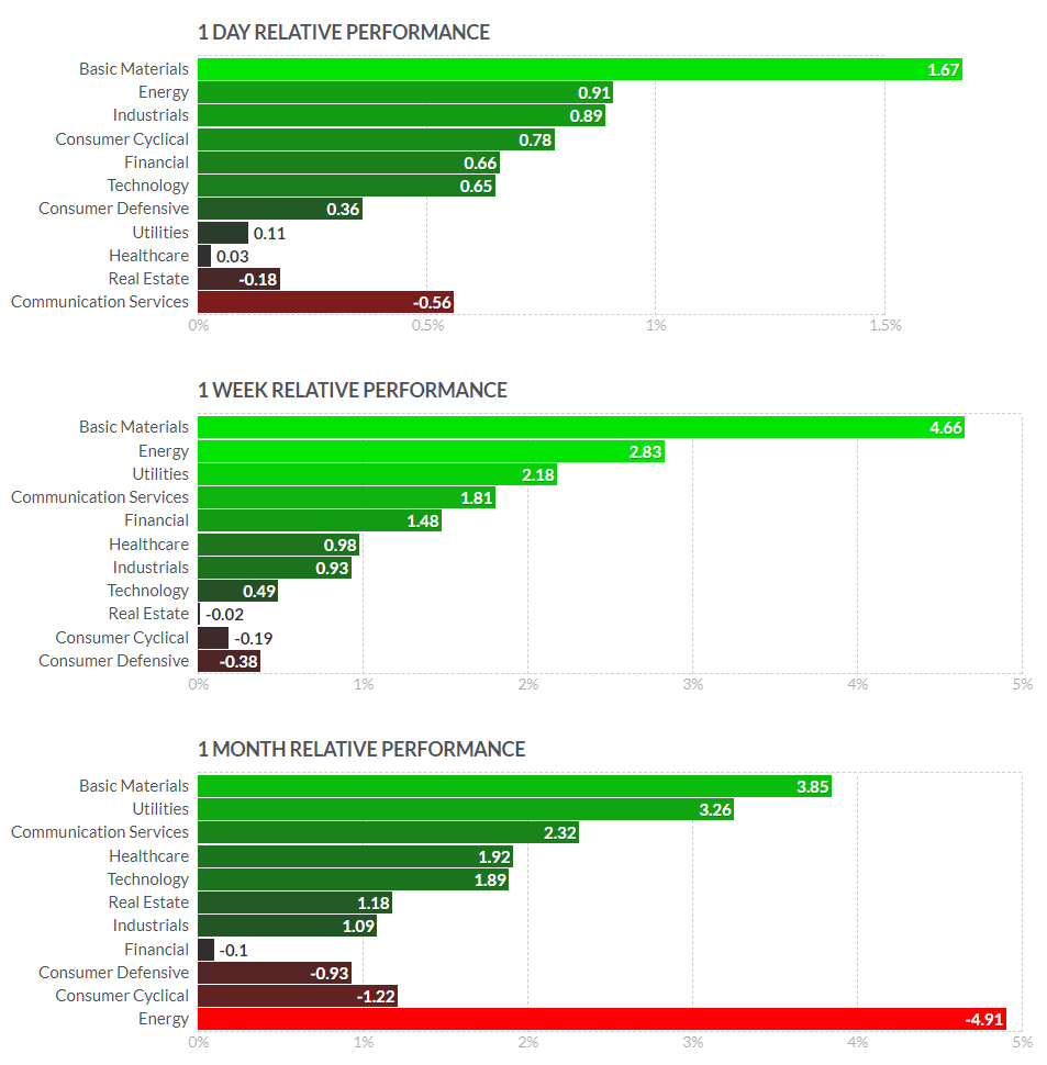 금일 섹터별 ETF는 커뮤니케이션(XLC/-1.1%) 섹터를 제외한 나머지 섹터가 모두 오름세를 기록하였으며, 금융(XLF/+1.1%), 소재(XLB/+1.1%), 자유소비재(XLY/+1.1%)가 큰 상승 폭 시현. 전일 실적을 발표한 페이스북(FB)은 순이익이 전년 동기대비 101% 증가하며 어닝 서프라이즈 기록. 다만, 월 이용자 수가 예상치를 하회한 점과, 애플의 새로운 프라이버시 정책으로 인해 하반기 광고 매출 둔화 우려가 어닝 서프라이즈를 가린 모습. 페이스북은 금일 4.0% 하락하여 커뮤니케이션(XLC) 섹터 하락을 주도. 반면 전일 미 연준의 비둘기파적 스탠스와 예상치를 하회한 미 GDP 발표에 달러인덱스는 한달래 최저 수준 기록. 이에 금, 은을 비롯한 비철금속 가격이 상승하며 소재(XLB) 섹터 내 뉴코(NUE/+4.1%), 프리포트-맥모란(FCX/+4.9%)과 같은 천연자원 업체가 섹터 상승을 견인.